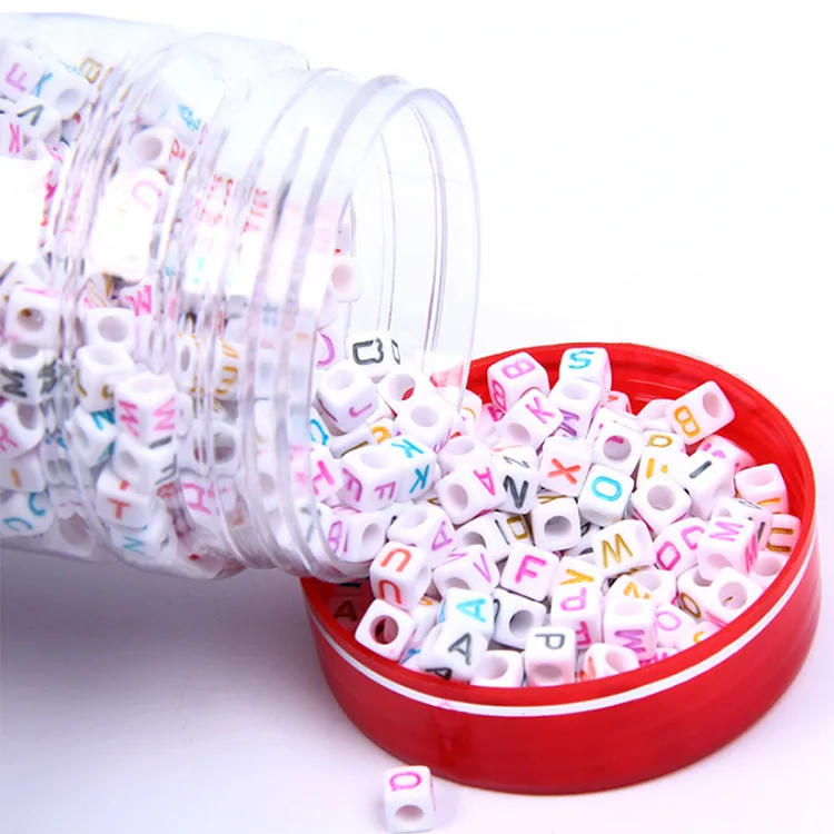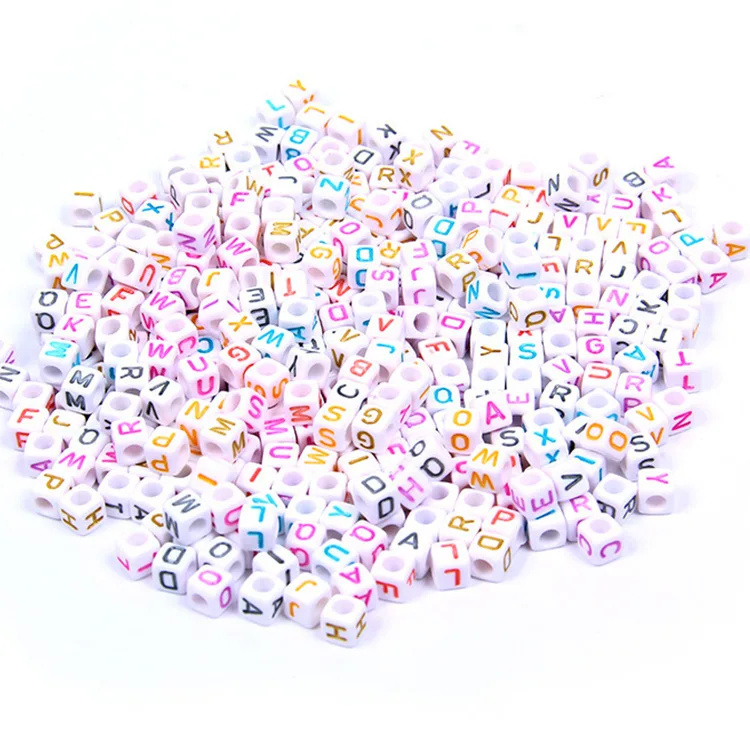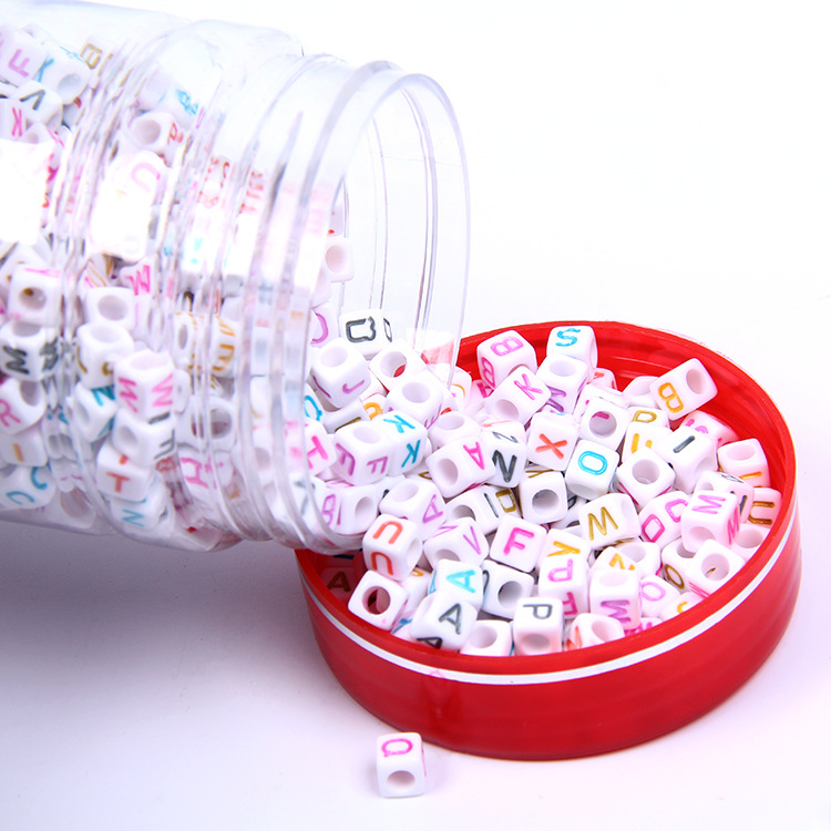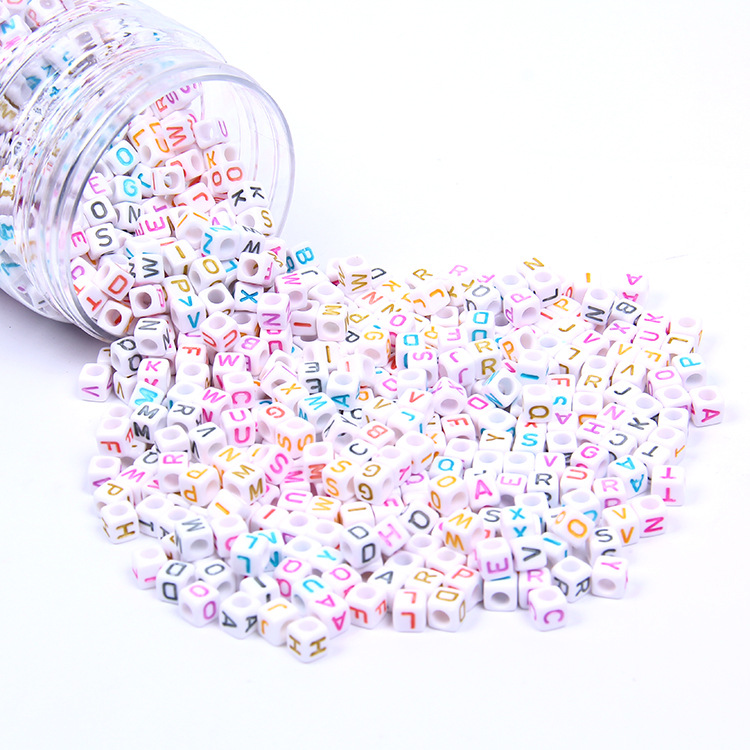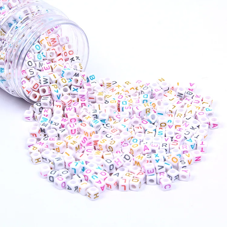 100pcs Rainbow Rubber Band Accessories Manual Diy White Letter Beads Acrylic Beads Children’s Educational Toys 0.6cm Loom