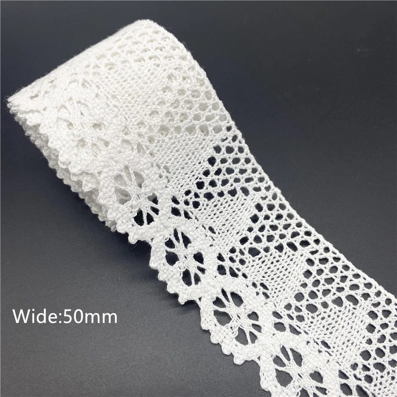 10mm-50mm 2yards White 100%Cotton Lace Ribbon For Apparel Sewing Fabric Trim Cotton Crocheted Lace Ribbon Handmade Accessories