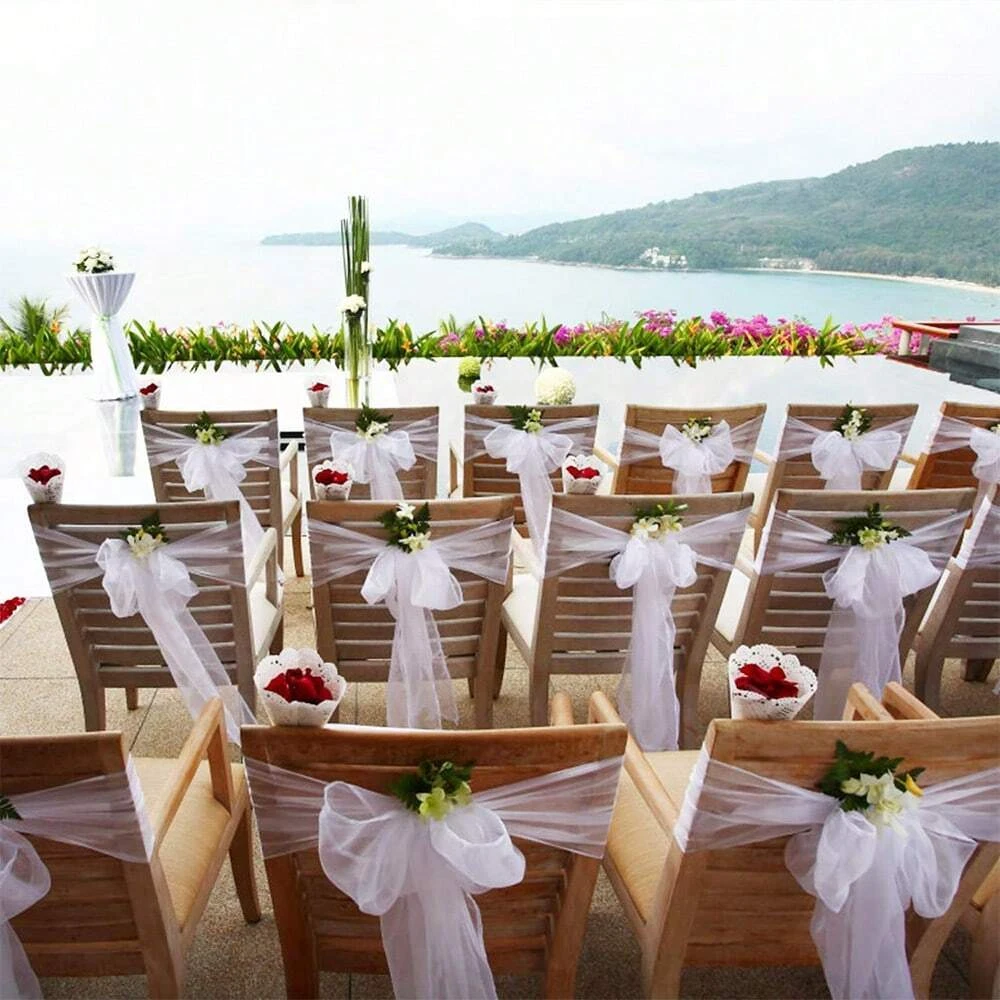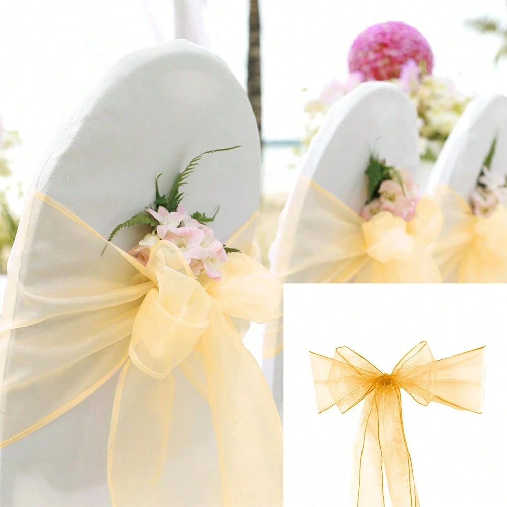 10PCs/lot Organza Chair Sashes Knot Bands Chair Bows For for Wedding Party Banquet Event Country Wedding Chair Decorationy Decoration DIY Home Decoration
