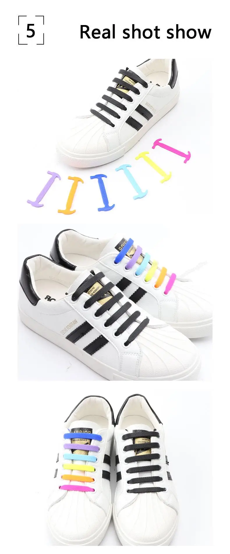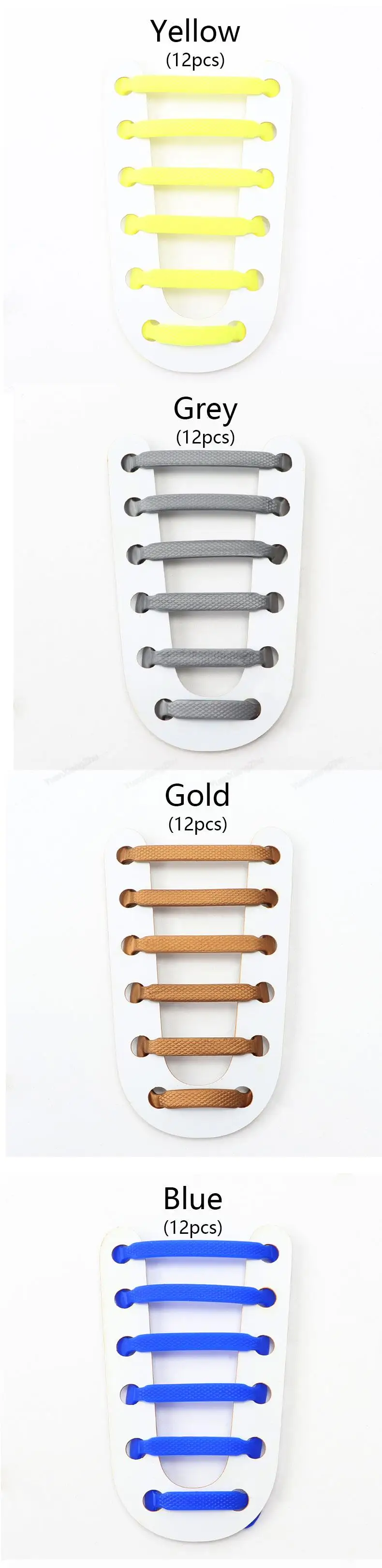 12Pcs Stretch Silicone Shoelaces No Tie Shoe laces Elastic Laces Sneakers Kids Adult Rubber Shoelace One Size Fits All Shoes