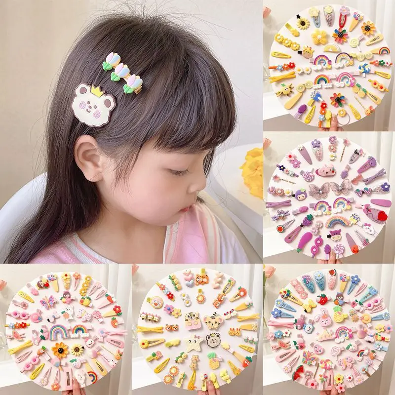 14 / 42Pcs Cartoon Baby Hair Clip Set Flower Fruit Baby Girl Barrettes Bangs Hairpins Kids Hair Accessories