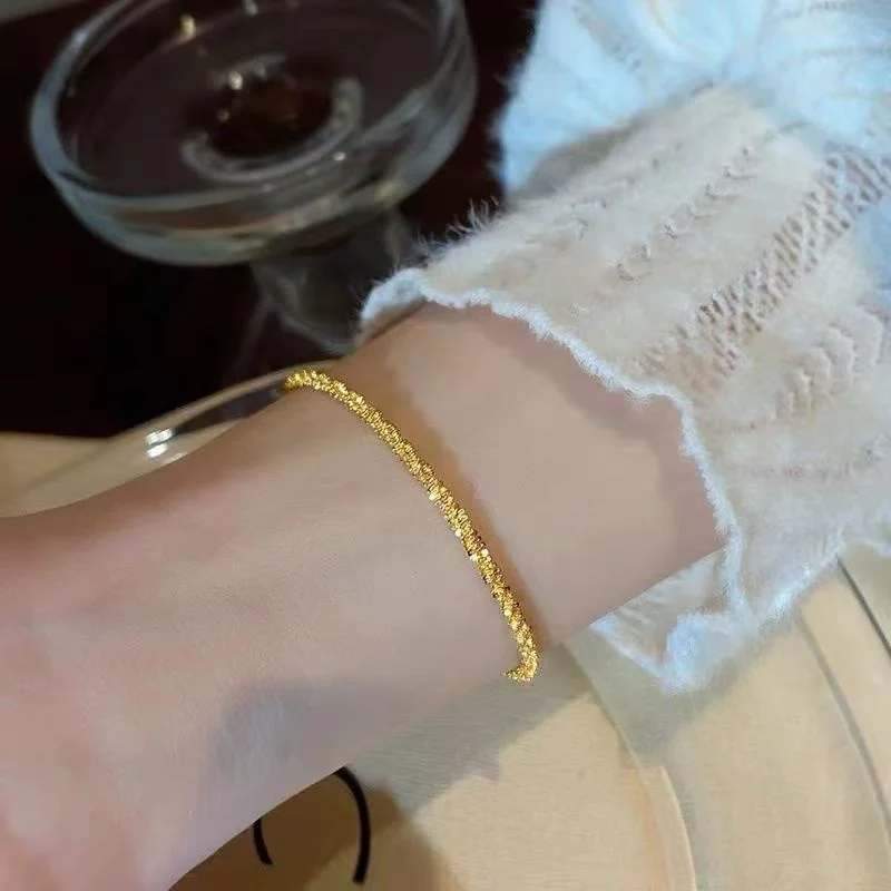 14 K Pure Gold Color Shiny Bracelet Chain for Women Bride Wedding Bracelet Bangle Fine Jewelry Gifts Not Fade