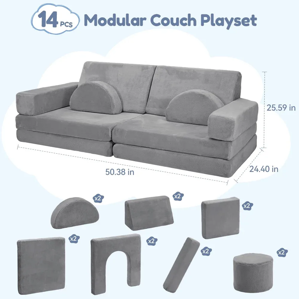14pcs Modular Kids Play Couch, Child Sectional Sofa Toddler Couch Kids Sofa for Bedroom Playroom Furniture