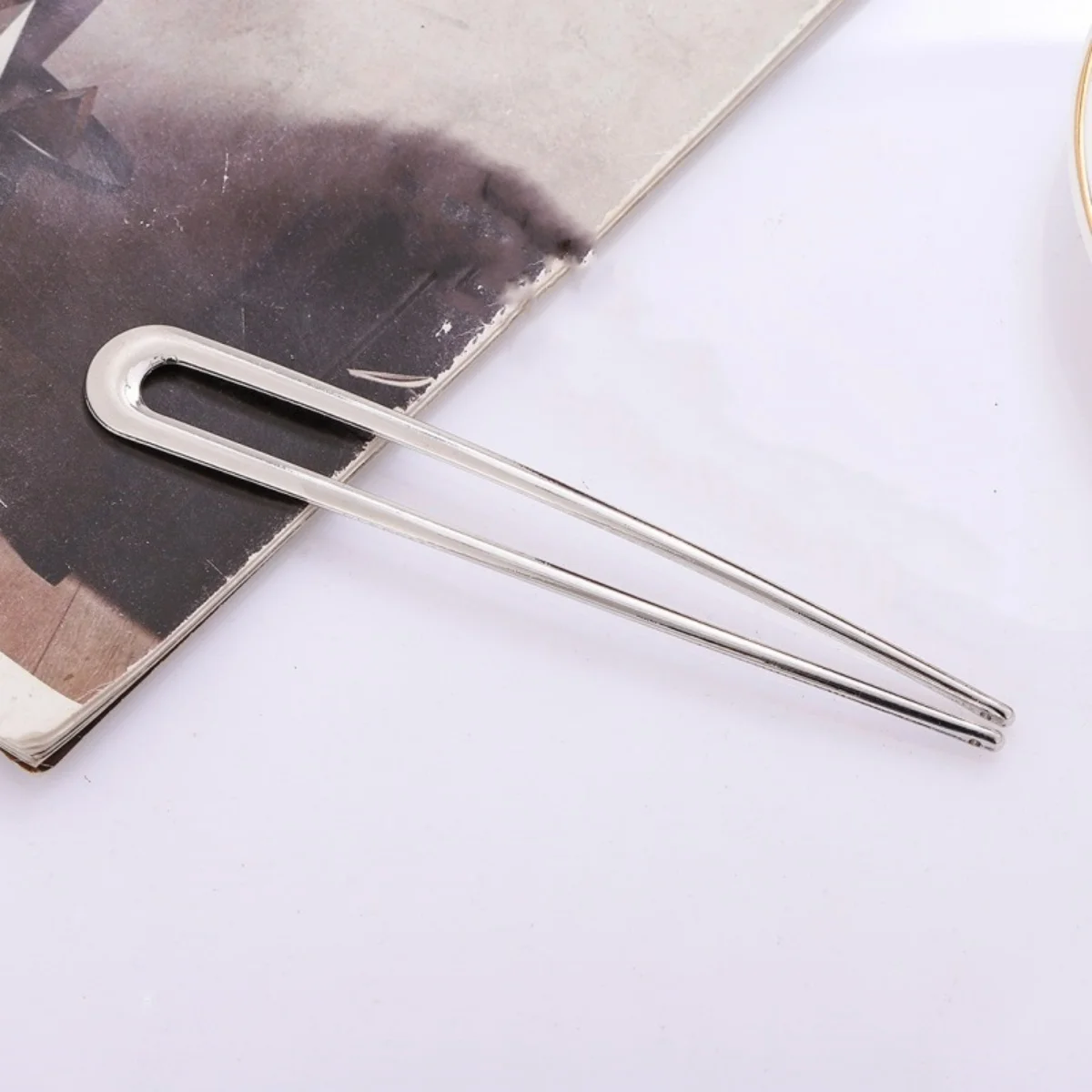 15cm U-Shaped Hair Fork Elegant Golden Silver-color Alloy Long Thick Hair French Hairpin Stick Women Girls Hair Accessories