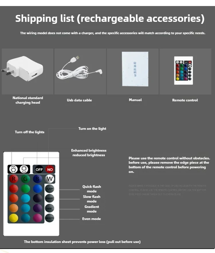 | Control mode | Remote control light changing |