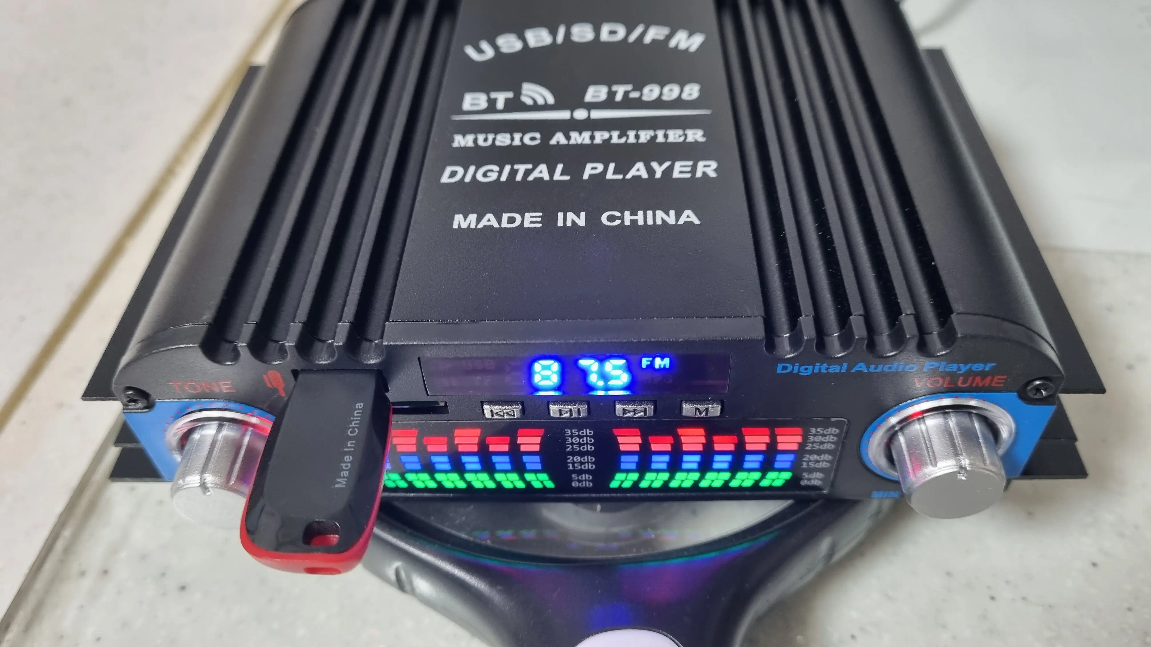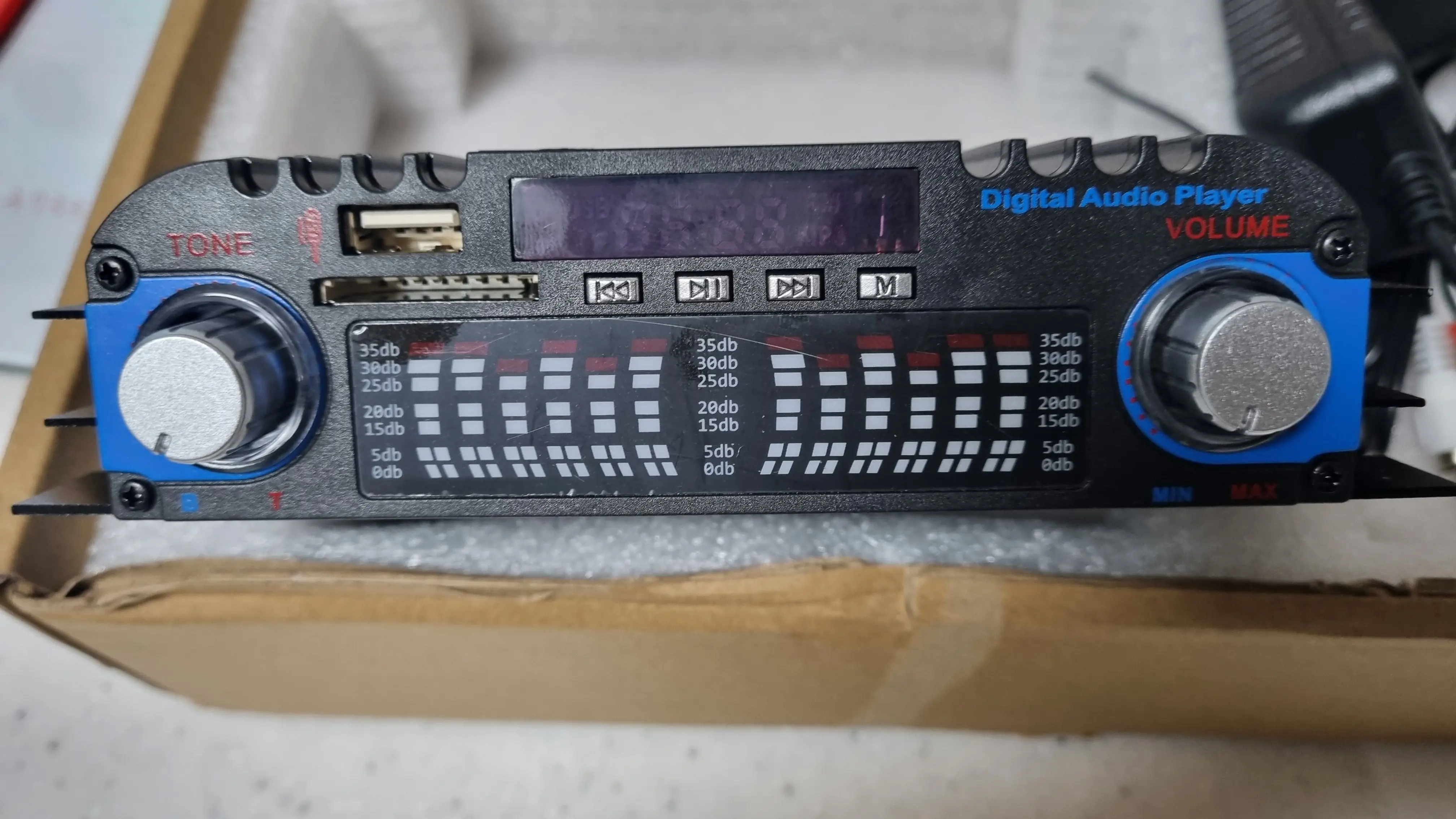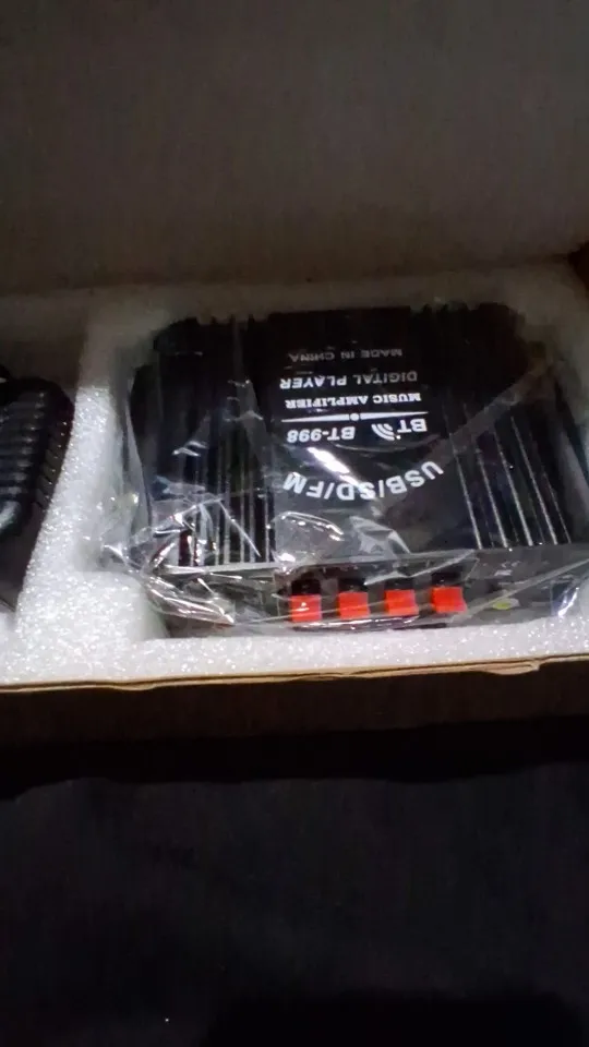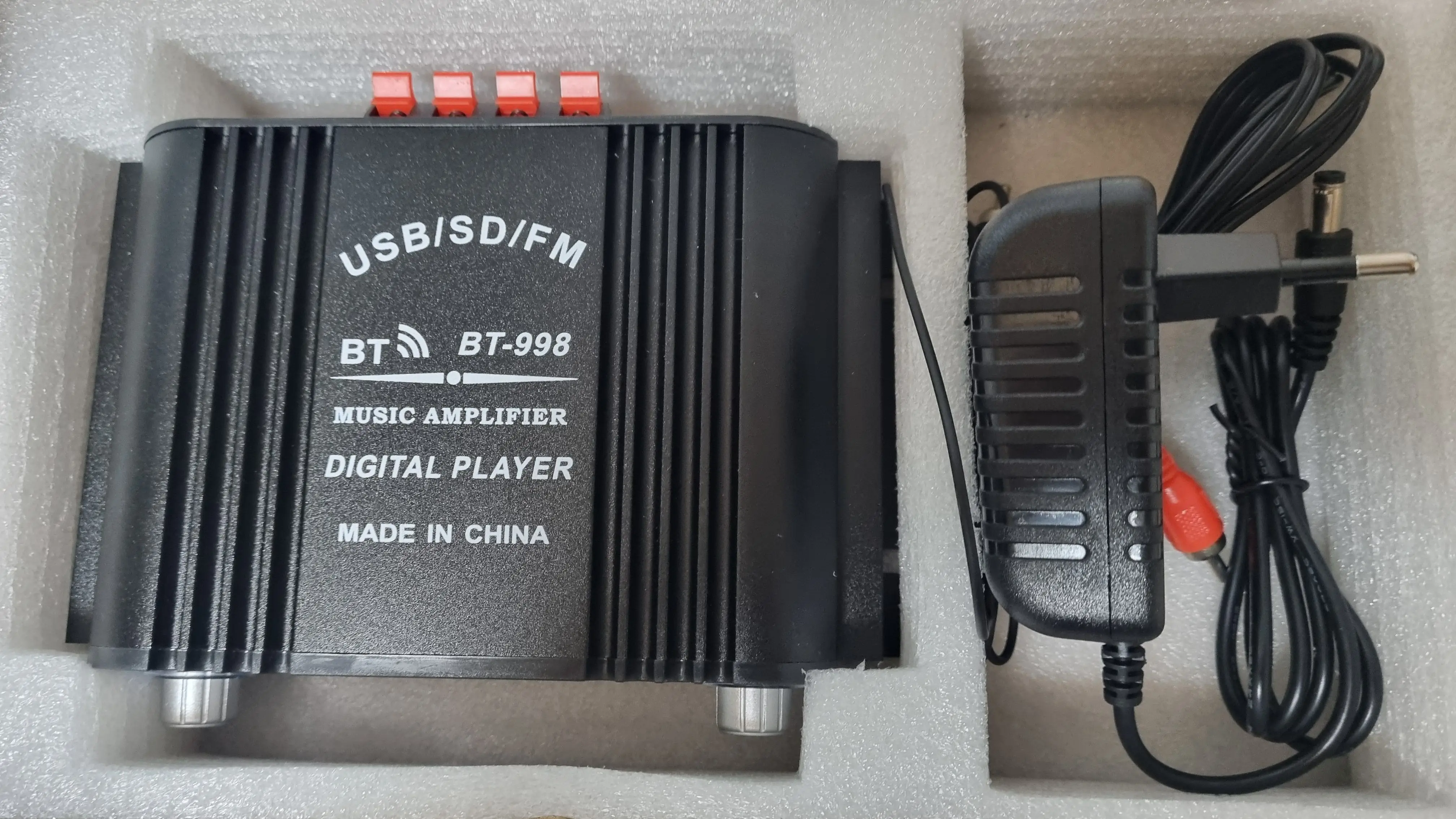 Super fast shipping. Excellent packaging. Identical to the image. Don’t expect great equipment, however in the end it’s a garage amplifier. You can’t expect more for 20 euros. It came with its remote control and power cable. Despite this, I DO recommend the item.