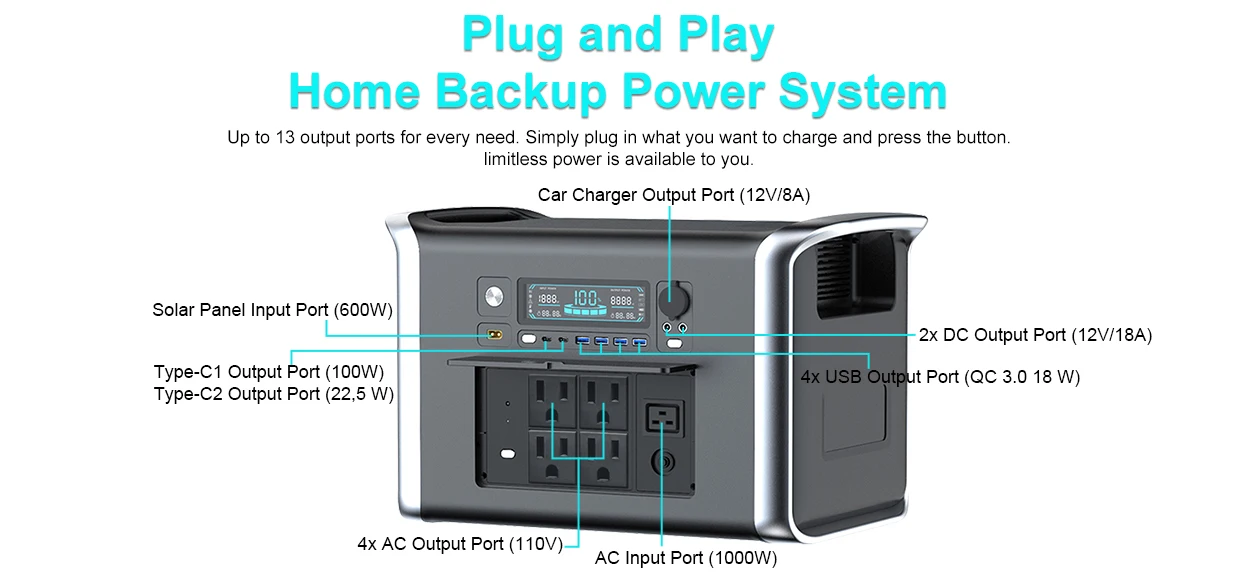 1 review for 1800W Portable Power Station Bank 1000W 500W Solar Generator 220V Lifepo4 Battery Camping RV Portable Backup Energy Systems