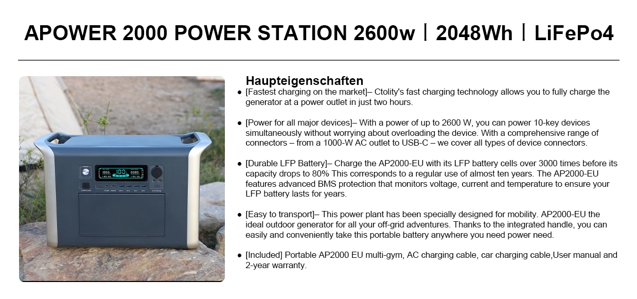 AP2000 2600W 2048WH LifePo4 Power Station