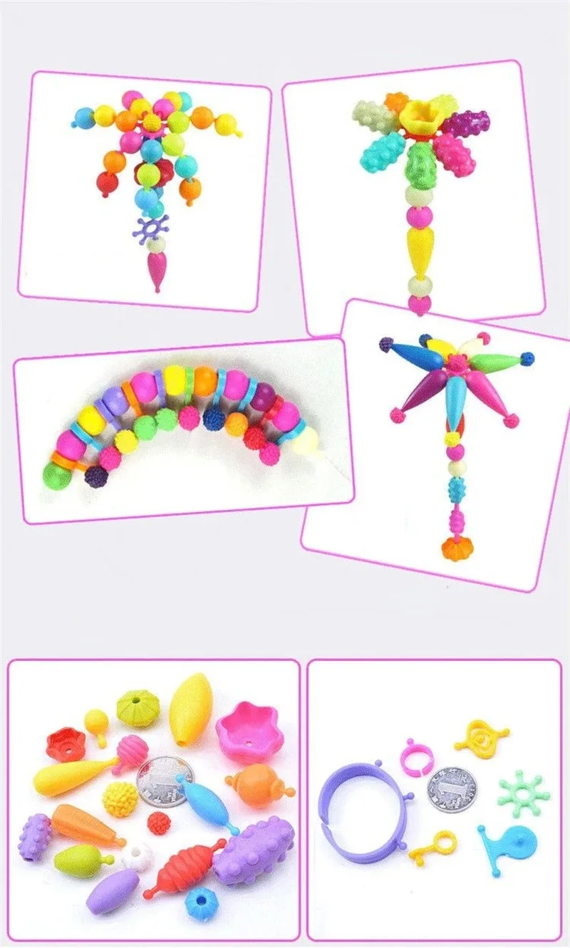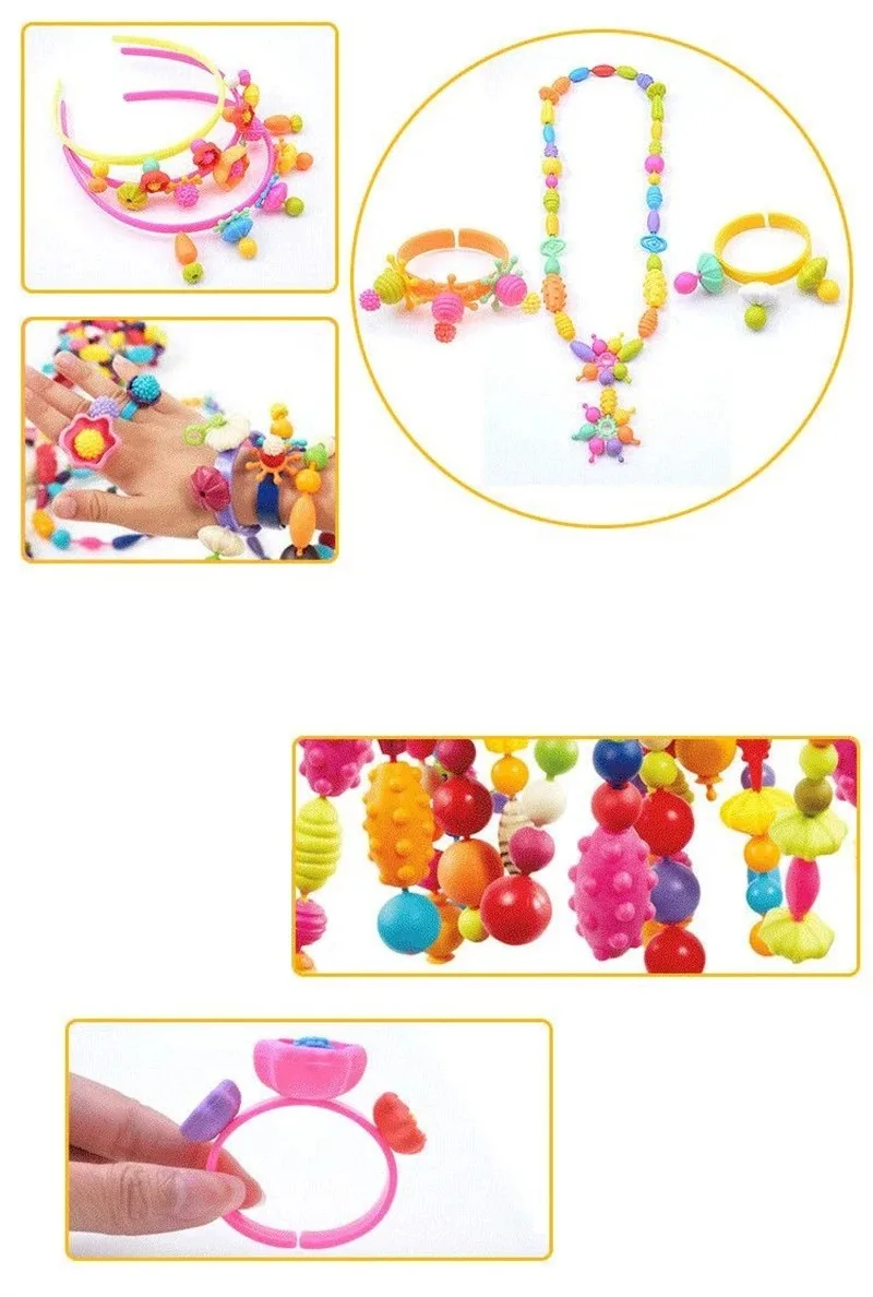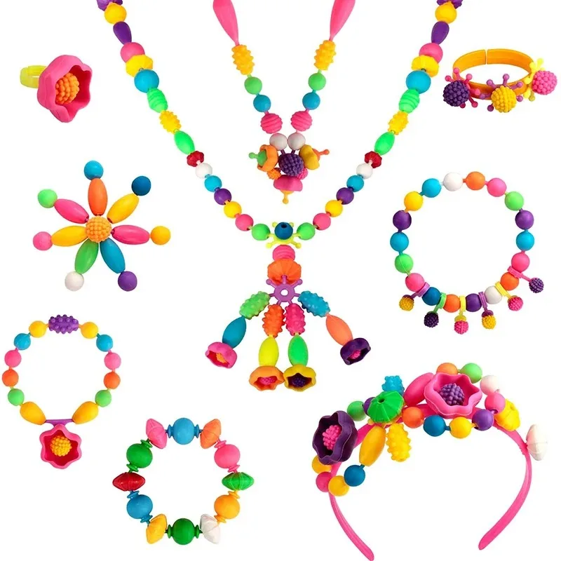 188-608pcs Pop Beads Children Girls Princess Jewelry Making Kit Creative Necklace Bracelet Rings DIY Ideal Christmas Birthday Gi