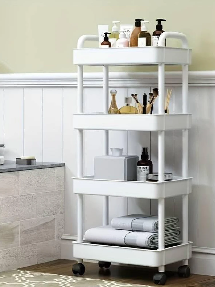 1pc 4-Tier Rolling Storage Cart with Wheels and Sturdy Handle Mobile Organizer for Kitchen Bathroom Office