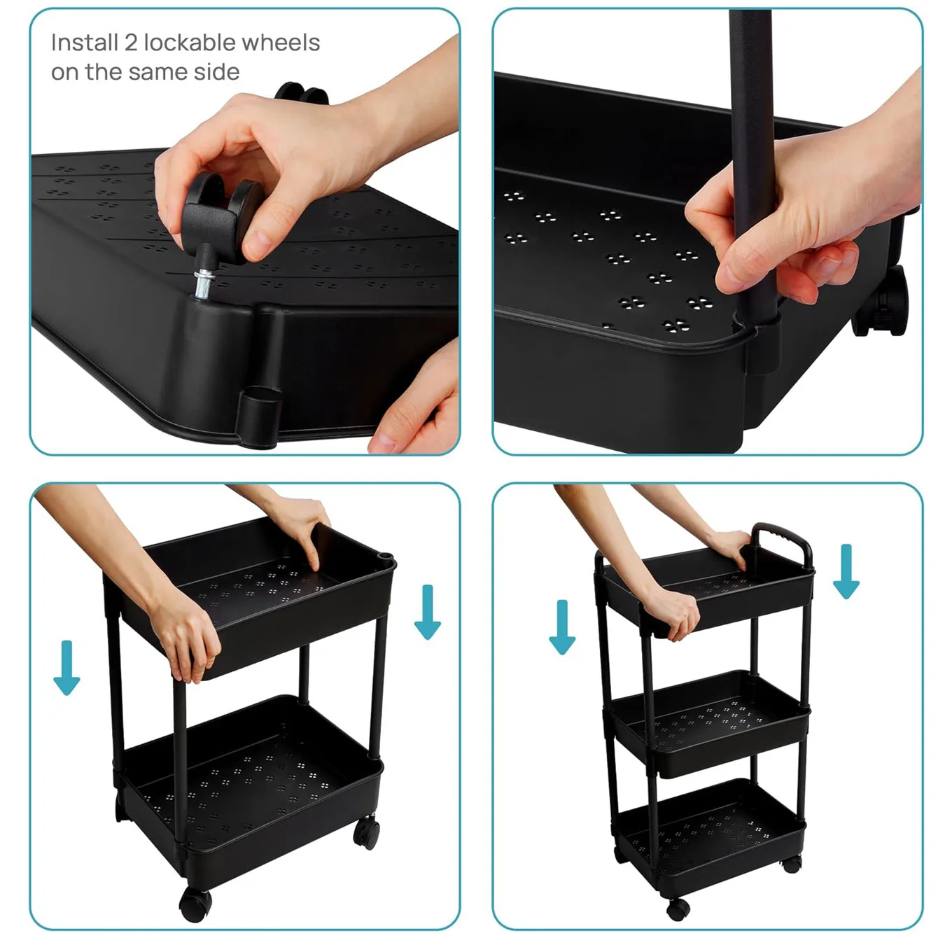 The storage cart comes with clear instructions for easy assembly. You'll be able to set it up in no time, making it convenient for users of all skill levels.