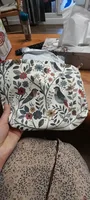 Looks so pretty. Bought to use as a makeup bag& perfect for size. Looks well made& design is lovely.