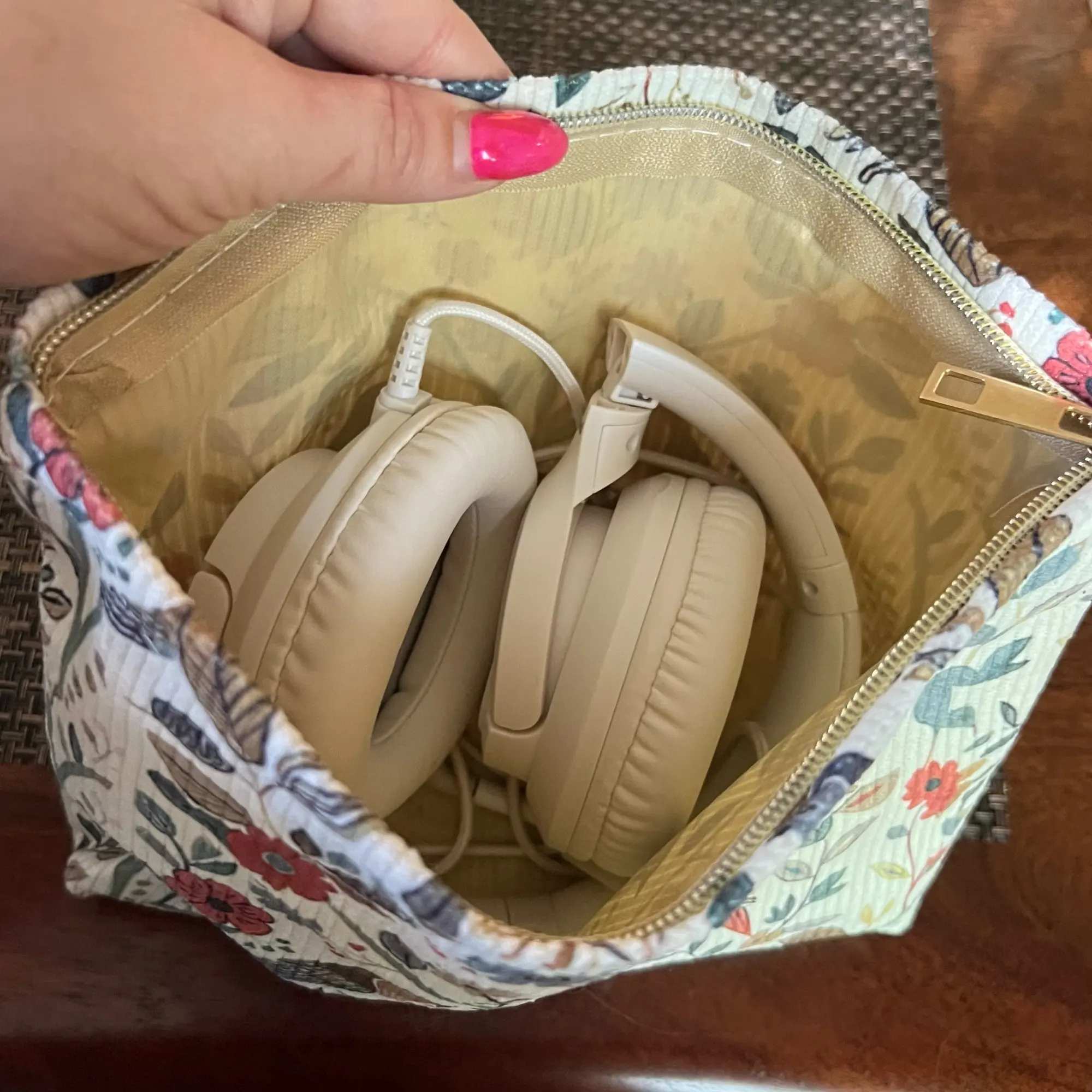 Very simple but pretty printed pouch. It will be used to pack cosmetics given as Christmas gifts.