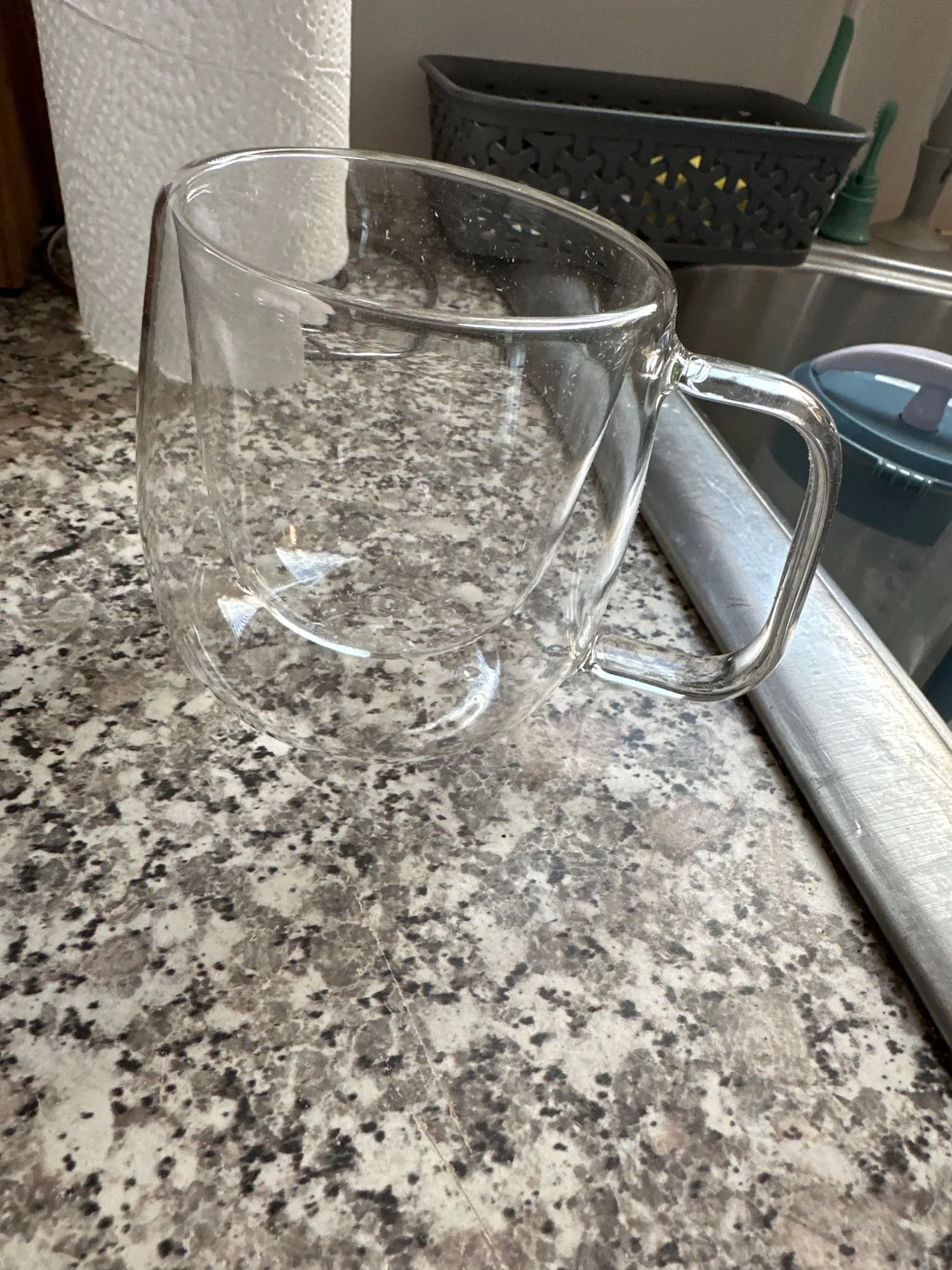 Love this little cup. It is light and delicate to the touch yet keeps the heat of my coffee away from my hand. Will order more.