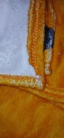The blanket is soft, cuddly and has a nice pattern (single-sided). It’s not thick, has short fibers and a nice color. The large size will allow you to cover yourself well while maintaining freedom of movement. I am very satisfied and recommend choosing it as a prize in a game.