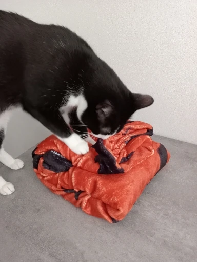 I am satisfied with my purchase. It is a soft and warm blanket available in different sizes and patterns. The package arrived on time and in perfect condition. The blanket has a pattern only on the top side and the inside is white, which doesn’t bother me at all, but it might be useful for another user who wants to purchase the product. My cat likes it a lot too as you can see, as soon as it arrived she started kneading it. It keeps you very warm thanks to its fabric, it does its job very well, I highly recommend it, especially for colder seasons.