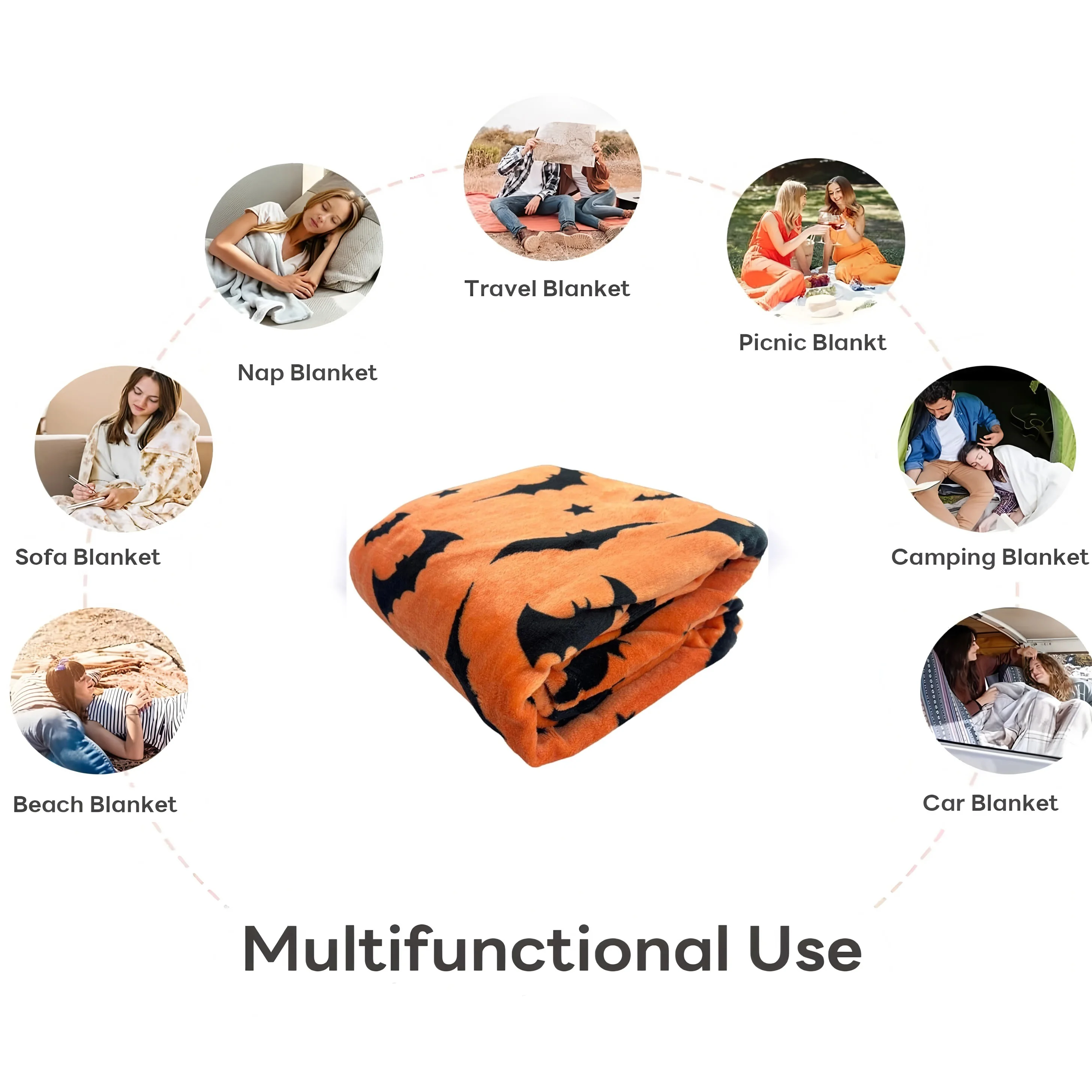 1PC Gifts Blanket Black Bats Printed Flannel Blanket Perfect for Sofa Office Bed Travel Sleep Read Relax Camping four season use