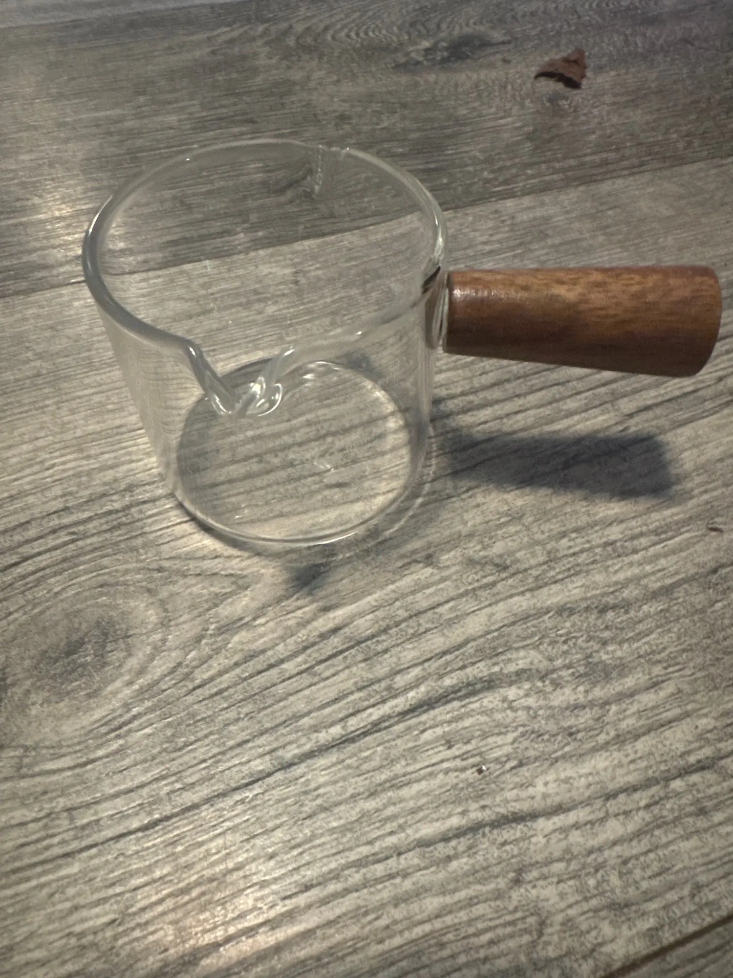 Very cool! It’s like a fine glass measuring cup with a wooden handle, it’s smaller than I thought but for pouring milk or measuring something in a cup, it’s really good, useful and also arrived in perfect condition, very well packaged.