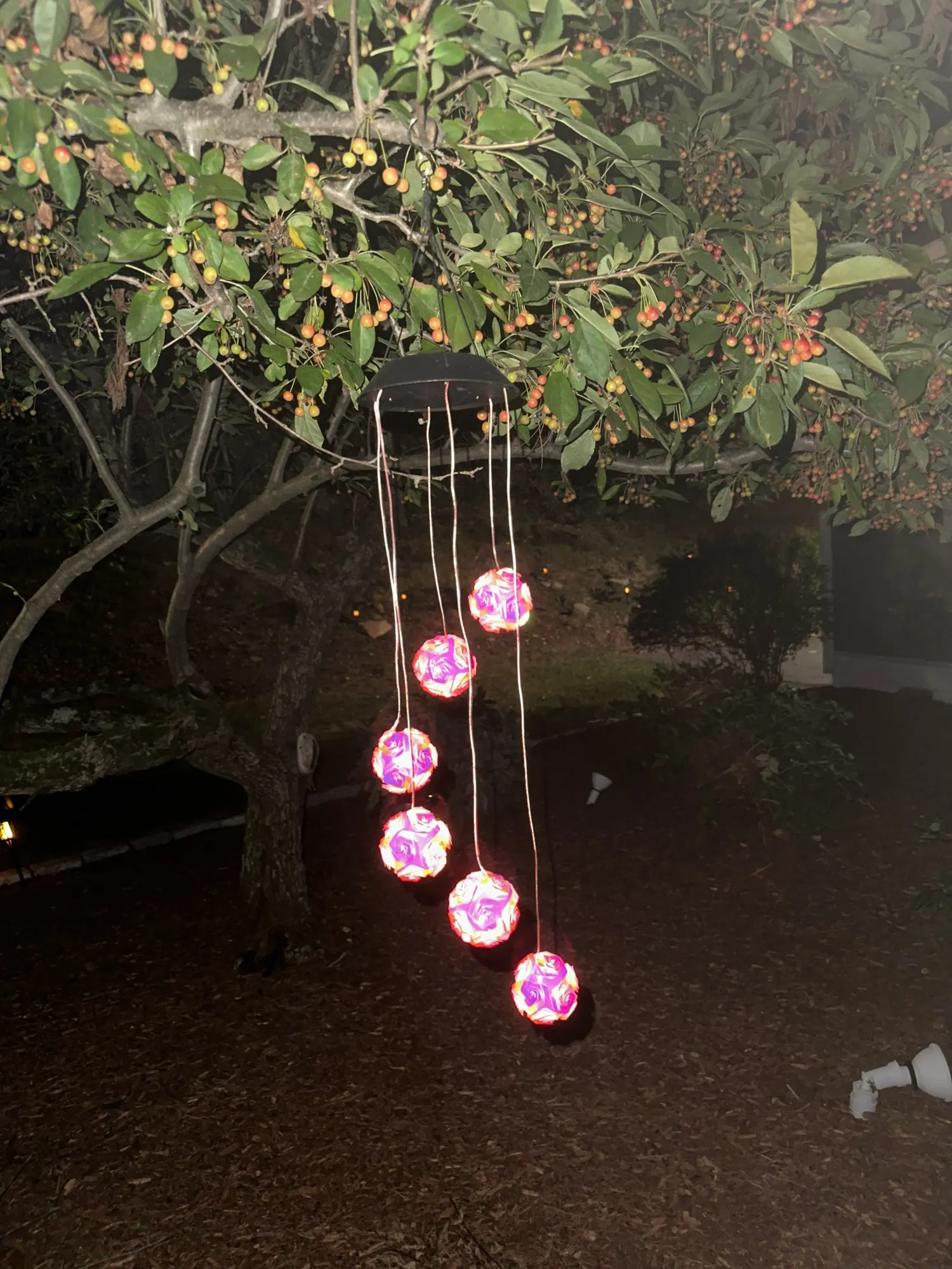 11 reviews for 1pc Solar Powered Color Changing Pink Embroidered Ball Flower Wind Chime Light Waterproof Outdoor Night Light Hanging Solar Lamp
