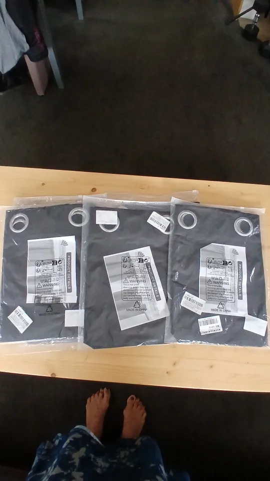 Today those curtains arrived and I am extremely happy with them. I opened one pack and I hope the rest look good too. It is recommended for everyone and it is blackout. I bought a total of 6 pieces for 3 large windows.