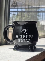 1. Spacious design: Enjoy your favorite hot drinks or soups with our witch's cauldron coffee mug. With a sturdy handle and legs for added stability, this mystery mug adds a magical charm to your kitchen or work. With a generous 350Ml capacity, brew something wicked in this black ceramic cauldron.
