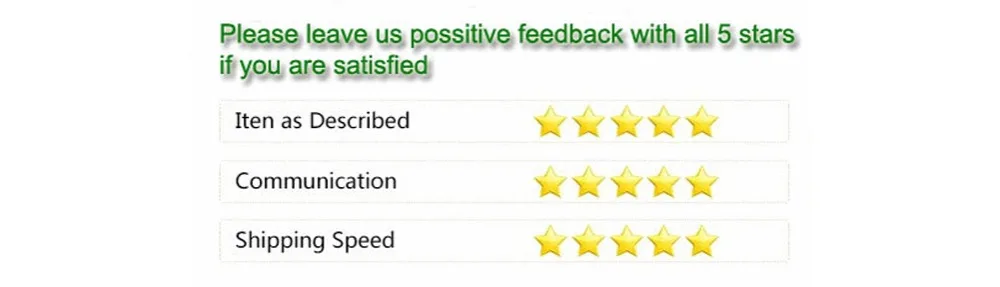 1. If you are satisfied with our items and our service,please take a minute to leave us possitive feedback with all 5 stars .we will appreciate it.