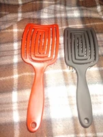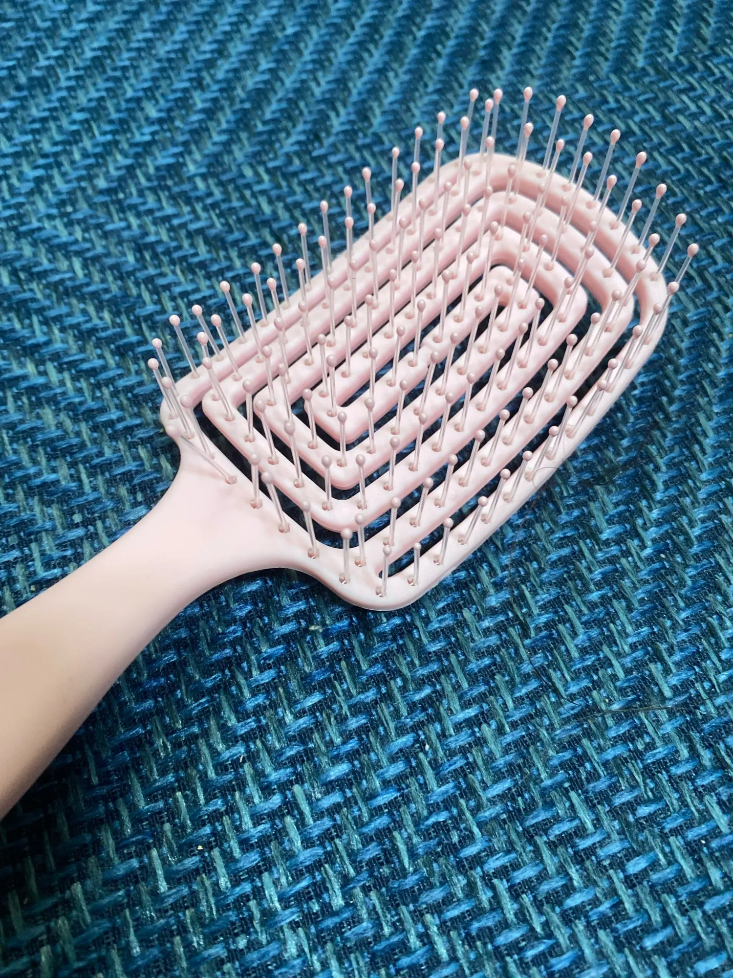 I bought two of these design combs; the larger one is very soft and great for long hair. The smaller design is stiffer and better for short curly hair. It’s good for the price. I’ll use them well~ The delivery was also fast!!