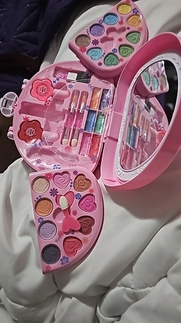 Very beautiful. Just wish the makeup wasn’t real. Keeping the tape on the kit so a mess isn’t made. Child is happy. Great value for money