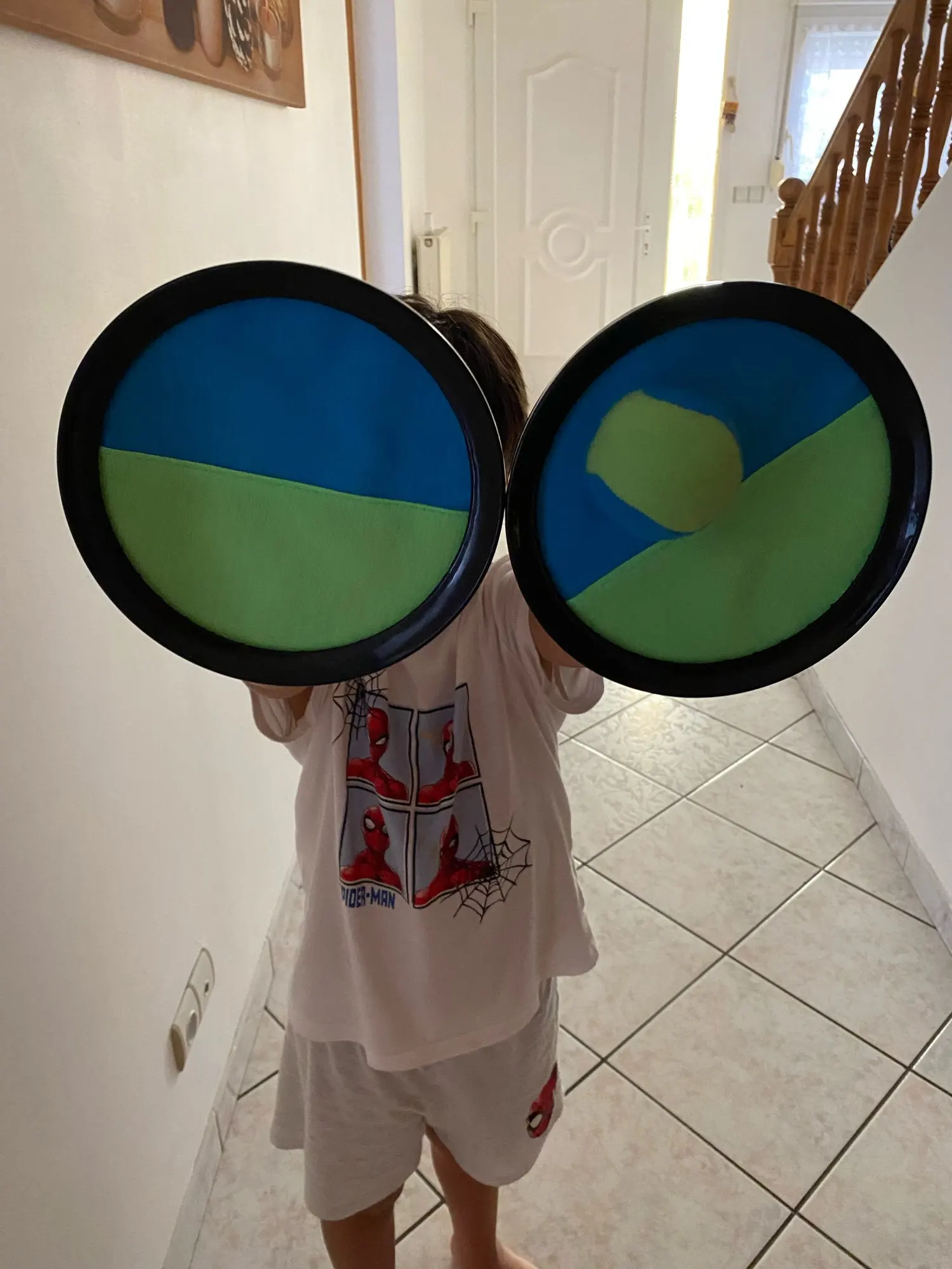Good toy for younger children. Ball is soft and can do no harm. The catch discs make it easy for small children to catch – which builds confidence and hand/eye coordination