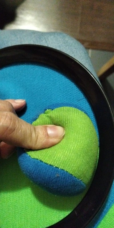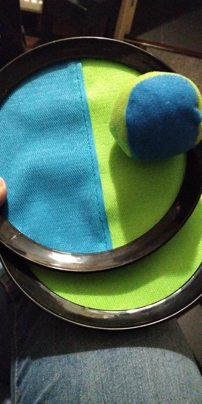 I am pleasantly surprised with the purchase of this product. It is a durable plastic object in the shape of a plate with a velcro on the back to hold the hand. On the other side, the velcro seems to be well secured to grab the ball. The ball itself is soft, and I also like that it is soft because it doesn’t bounce against walls or get lost easily. In this way, I can play with this game at home without the risk of breaking anything. I recommend it without any doubt.
