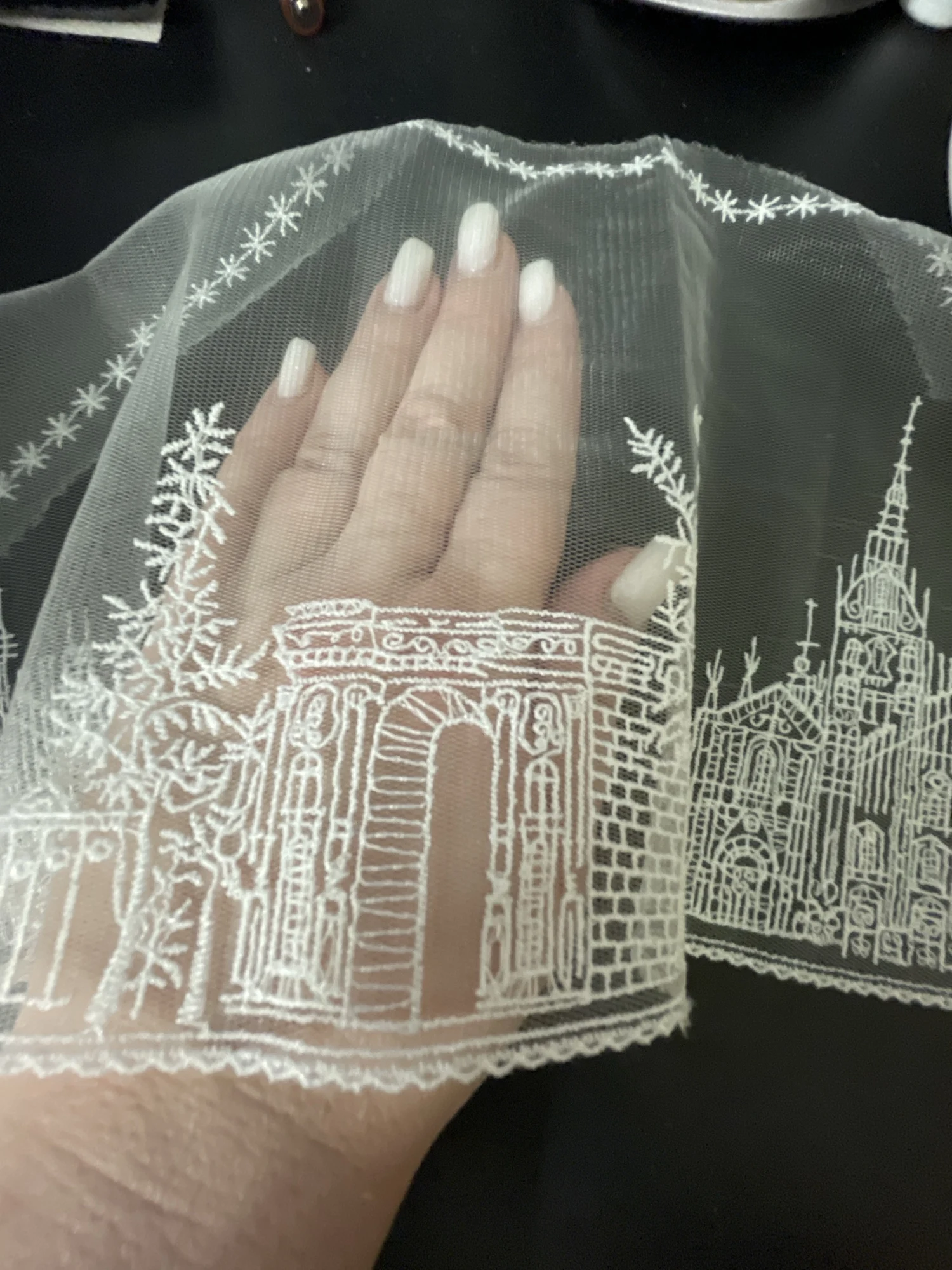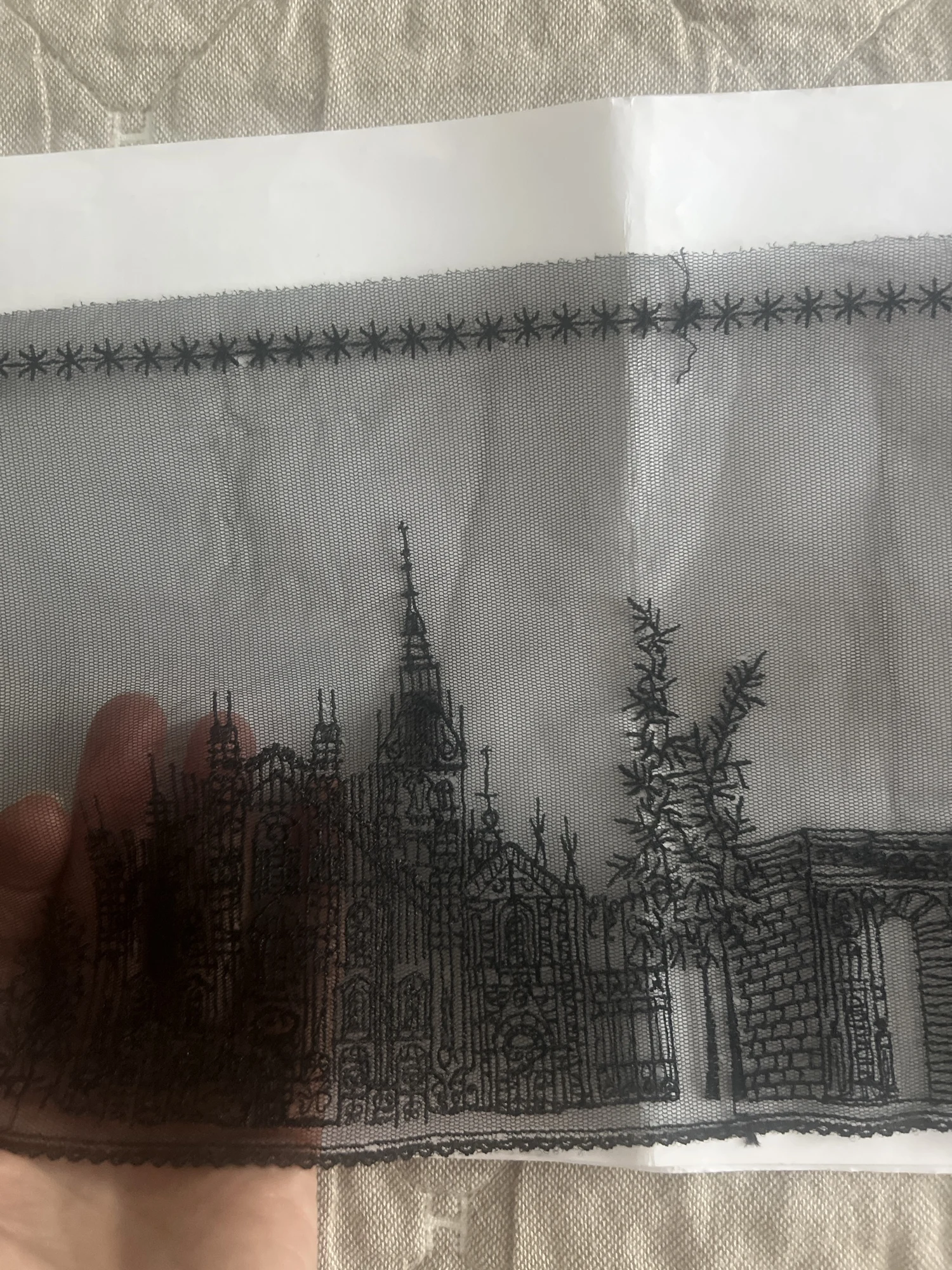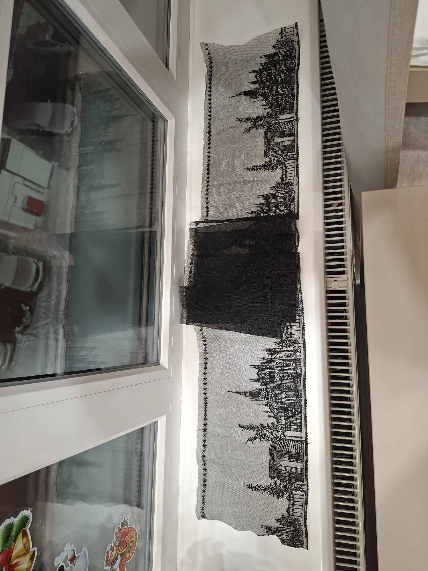 It arrived a little over a yard, exactly 1 meter along the top edge. The lace is beautiful, like a work of art. It would be interesting to see lace Dutch houses, Chinese pagodas, and winter landscapes in the same style. It’s very beautiful! Thank you so much for such beauty!