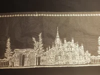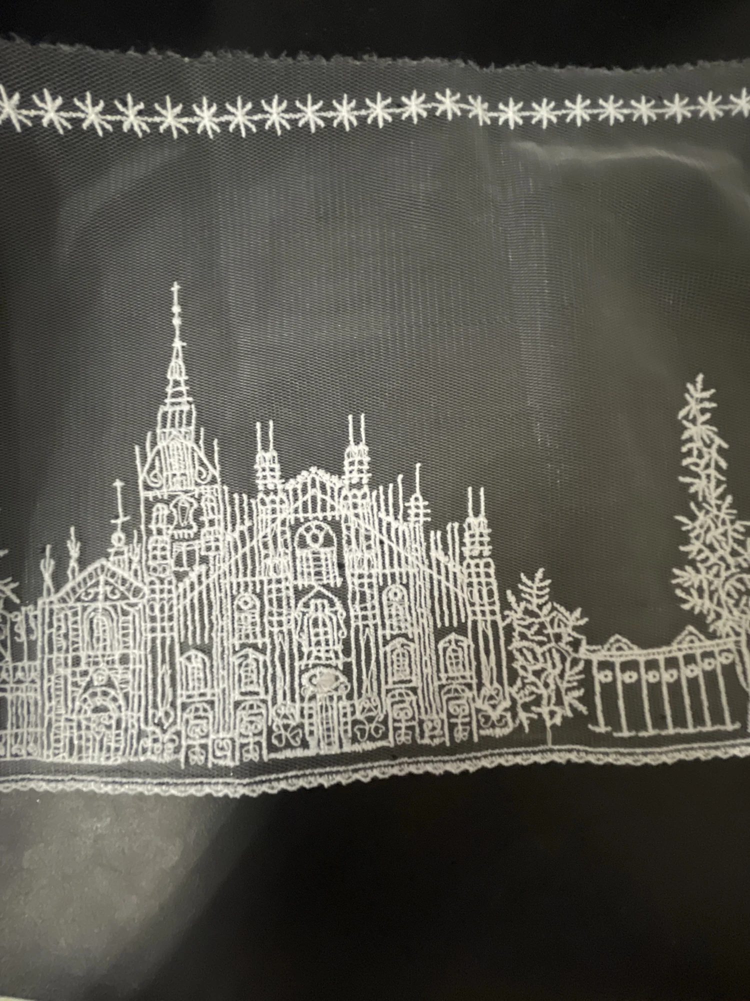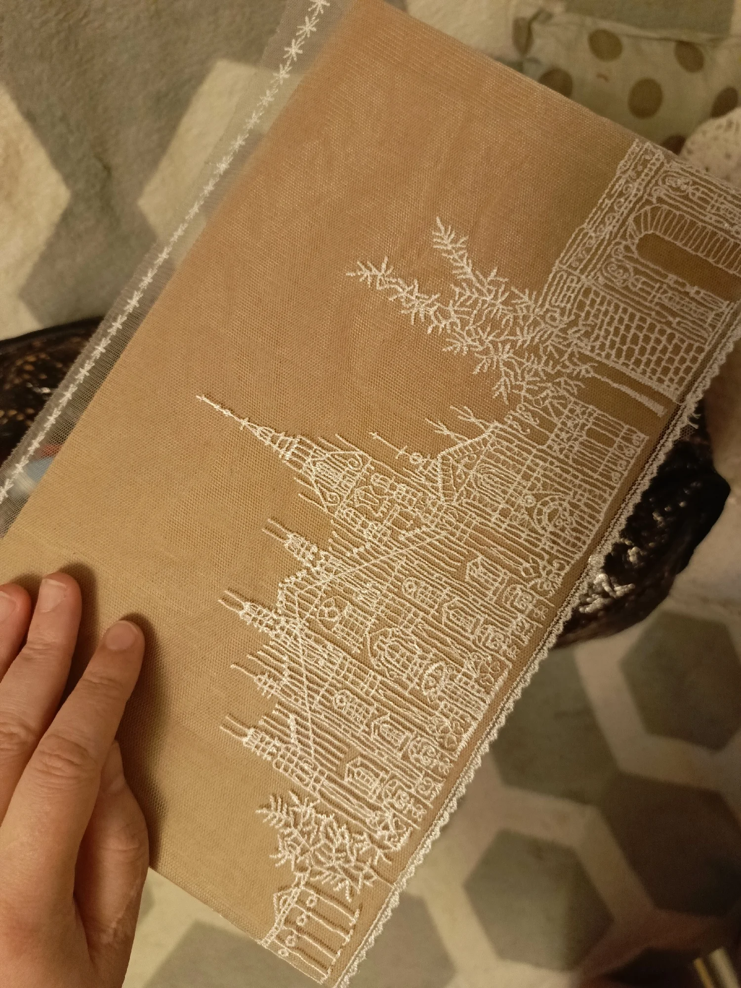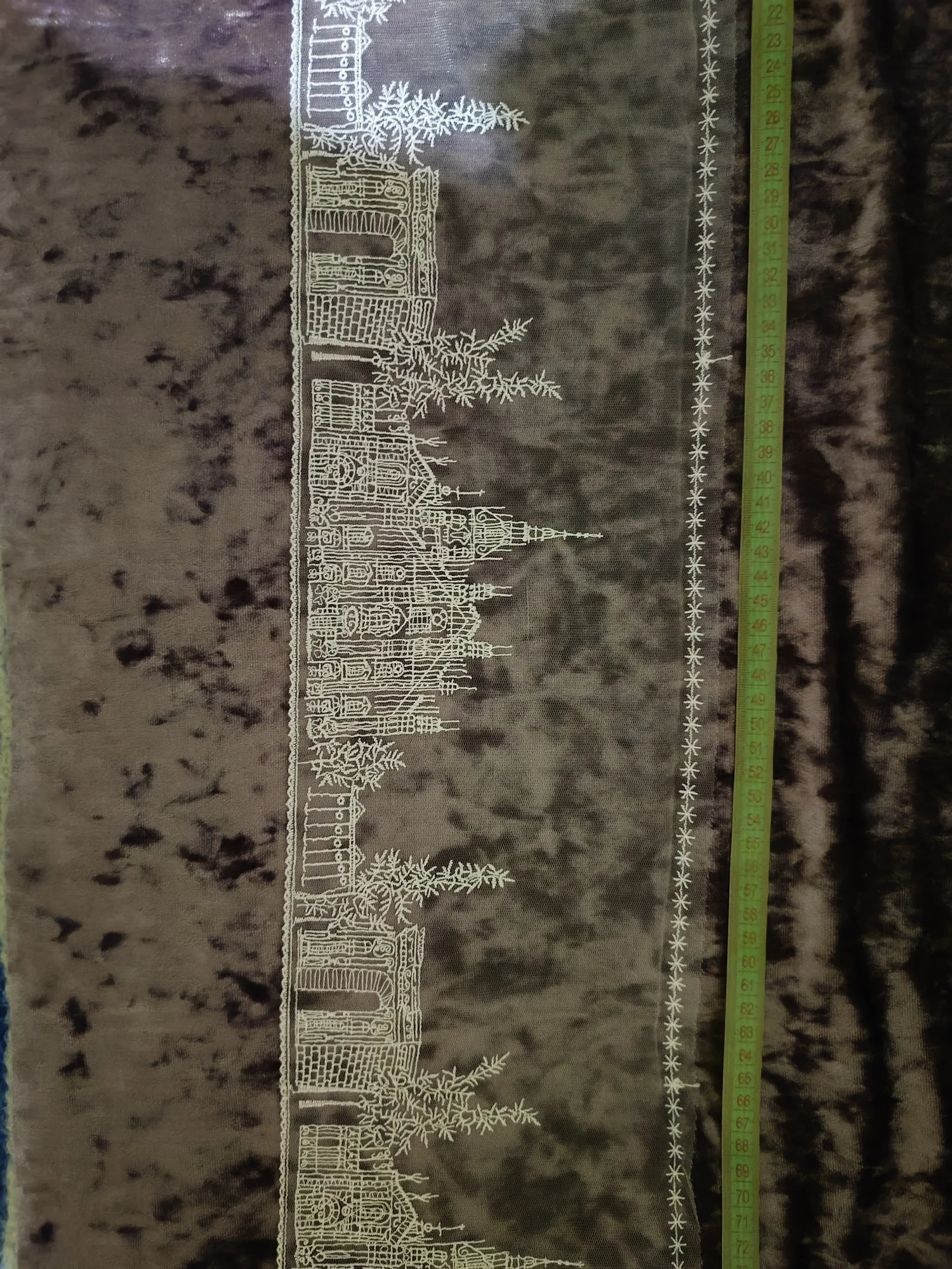 It arrived a little over a yard, exactly 1 meter along the top edge. The lace is beautiful, like a work of art. It would be interesting to see lace Dutch houses, Chinese pagodas, and winter landscapes in the same style. It’s very beautiful! Thank you so much for such beauty!