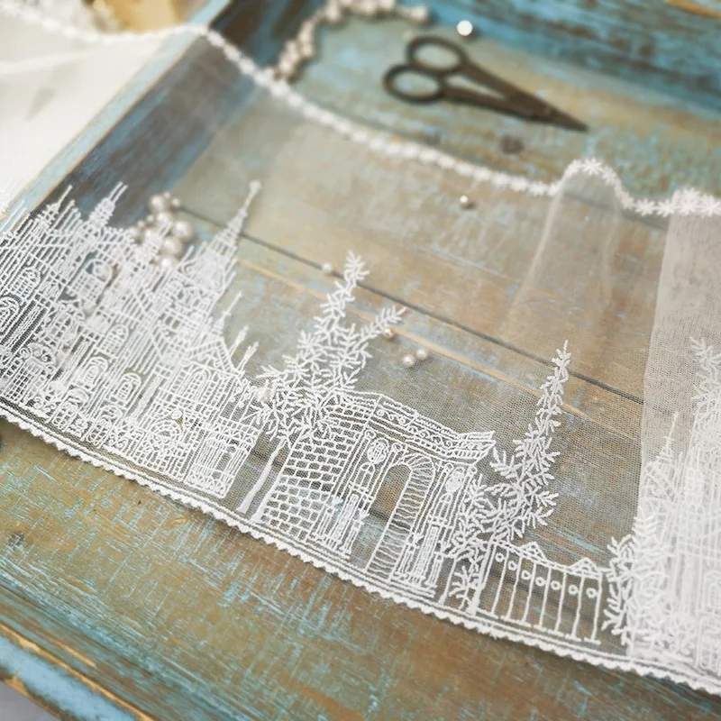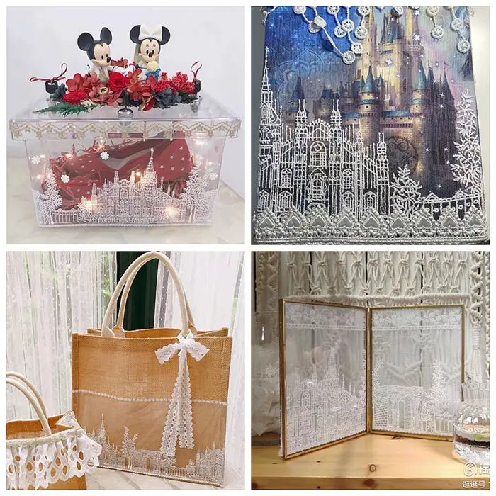 1Y Princess Castle Embroidery Lace Trim Cheongsam Dresses, Garments, Sewing Accessories, Lace Fabrics 17.3CM Wide