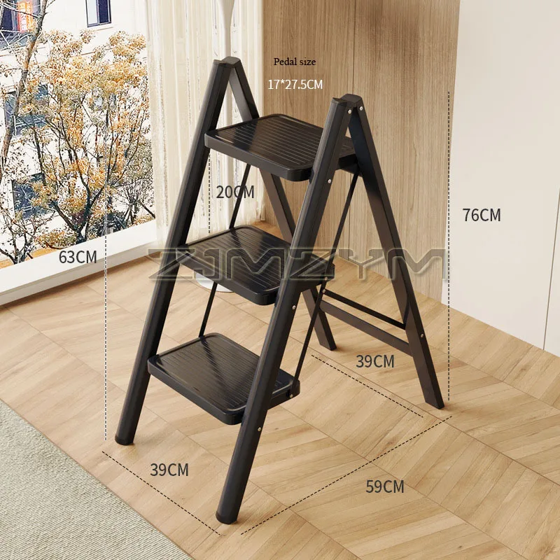 2-3 Step Ladder Folding Ladder Small Steel Step Stool Household Office Portable Herringbone Ladder With Wide Anti-Slip Pedal