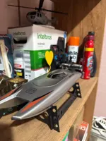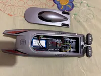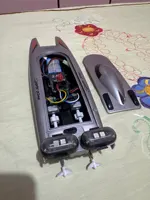 Very fun boat, it goes fast, it can even jump over waves, the battery lasts a long time. The only downside is the remote control: it’s not waterproof, as soon as a drop of water gets inside it goes crazy.