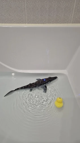 Super! The Mazozavr swims and launches a fountain! My son is very happy!
