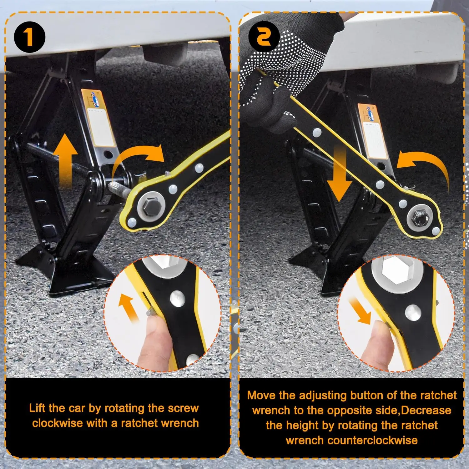 【Stable and Secure】The car jack kit is made from high-quality materials and is designed to withstand heavy use. Its corrosion-resistant construction guarantees durability and longevity, making it suitable for any weather conditions.