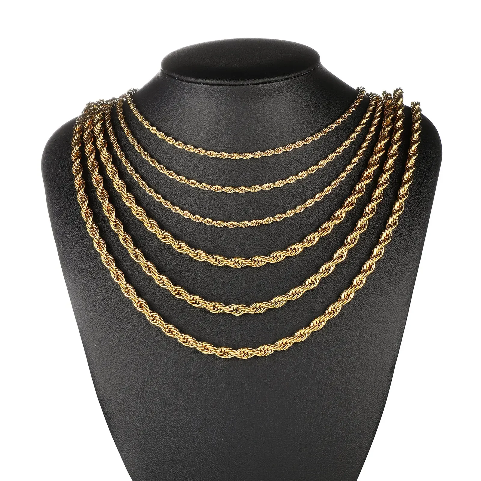 13 reviews for 2-6MM Gold Color Twisted Rope Chain Necklace Stainless Steel Never Fade Waterproof Choker For Men Women Fashion Jewelry