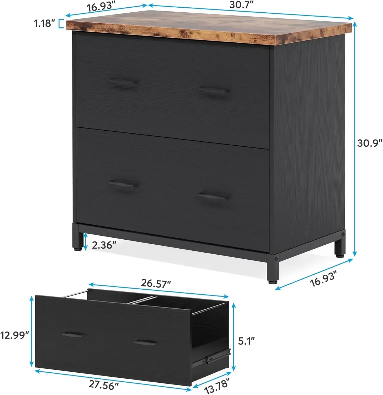 - FUNCTIONAL & STYLISH: To relieve your desk from piles of papers and you from the messy stress, this lateral file cabinet that oozes a charming rustic appeal and helps you say “bye” to chaos on the desk. Clean line design with a modern black outfit, will be a great choice for office, conference, home, college, etc.