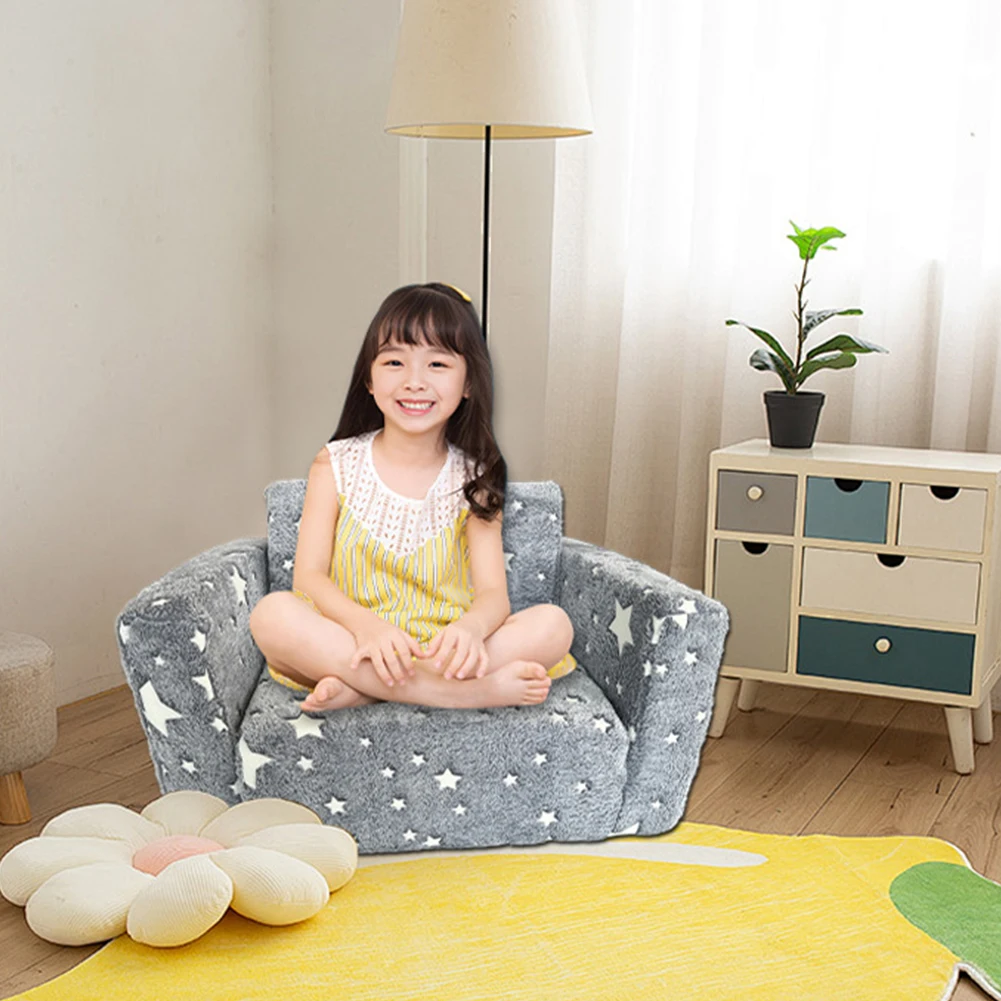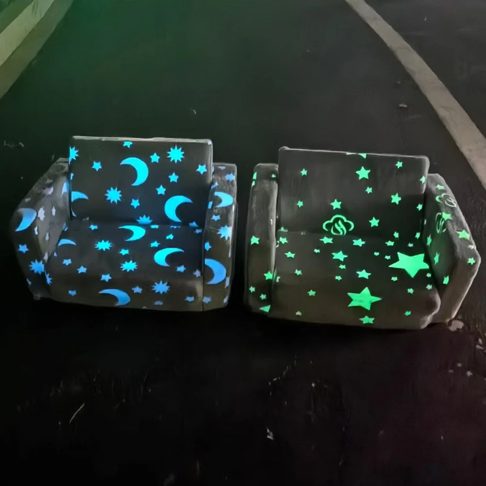 2 in 1 Kids Sofa Chair Comfy Toddler Chair Folding Out Glow in The Dark Extra Soft Open Couch 2-in-1 Toddler Soft Couch Fold Out