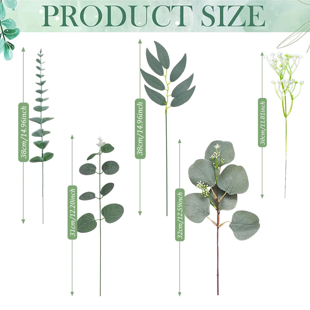 16 reviews for 20/25Pcs Artificial Mixed Eucalyptus Leaves Stems Fake Flower for DIY Bouquets Floral Arrangement Home Wedding Party Decoration
