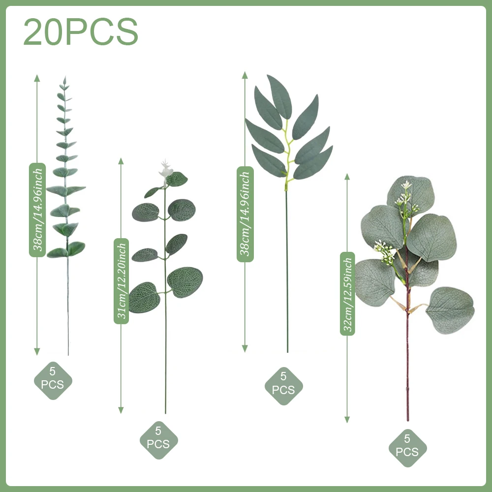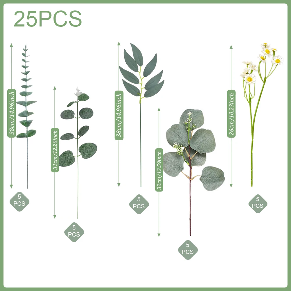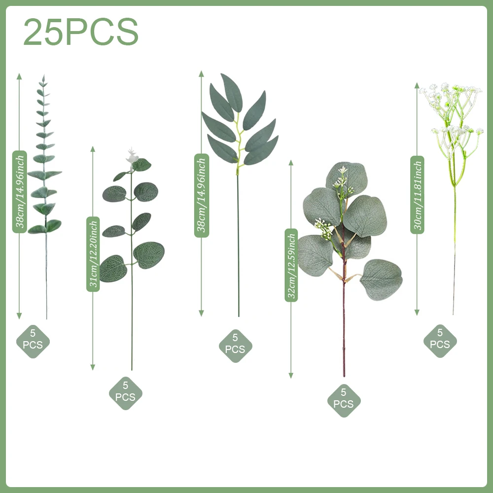 20/25Pcs Artificial Mixed Eucalyptus Leaves Stems Fake Flower for DIY Bouquets Floral Arrangement Home Wedding Party Decoration
