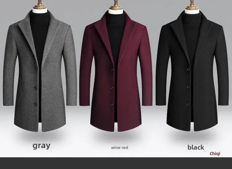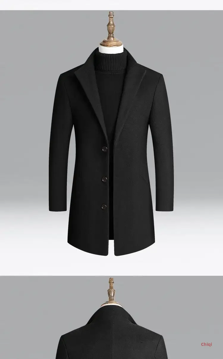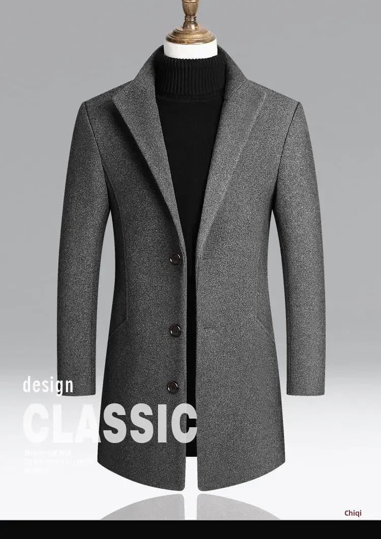 2022 New Men's Woolen Jacket Slim Fit Medium-length Coat Smooths Your Silhouette Autumn/winter Warm Comfortable Wear