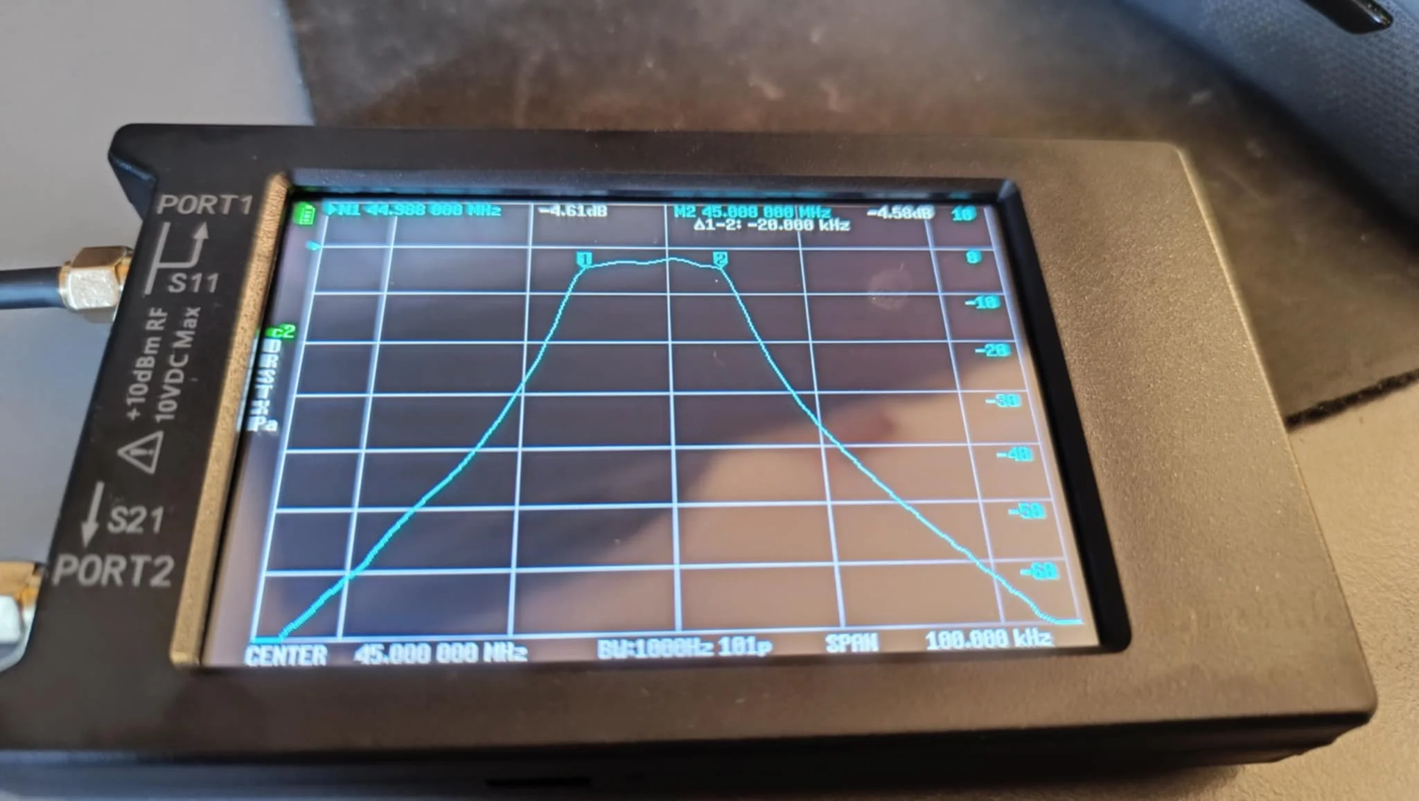 Great, I am very satisfied. For this price, it’s worth it for everyone who plays with RF and not only. 200zł for VNA is like free. You know – it’s not R&S or Keysight, but it works surprisingly well. I am attaching the measurement of the quartz filter for IF 45MHz.