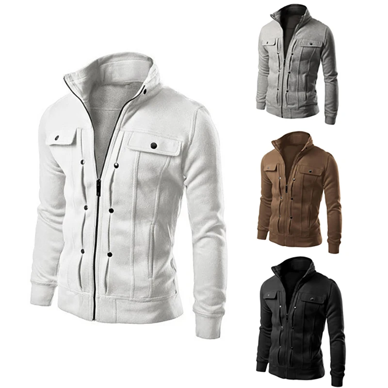 2024 Cardigan Sweater Men Casual Jackets Standing Collar Zipper Sweatshirt Outdoor Streetwear Casual Long Sleeve Coats Clothes