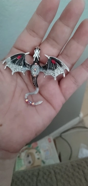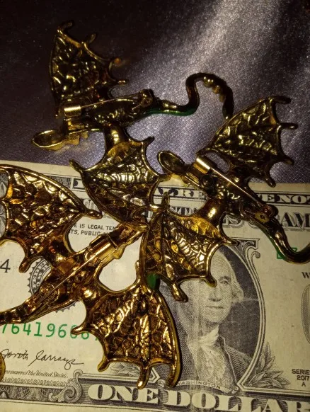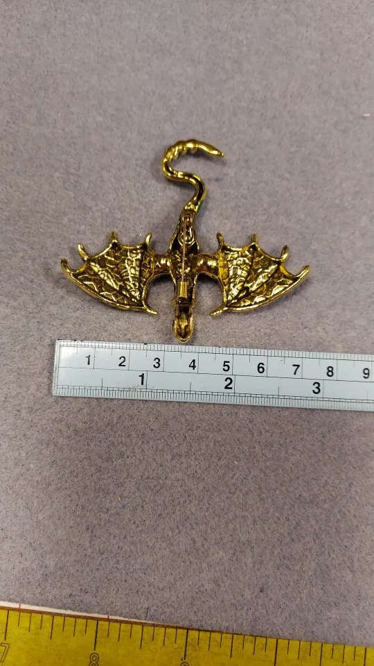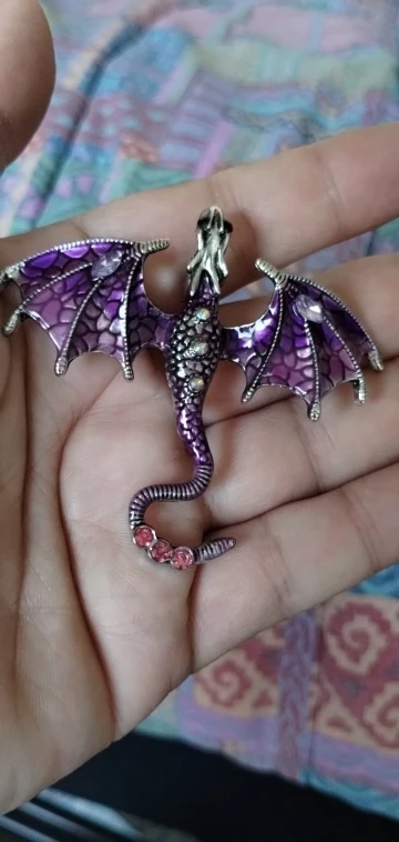 The dragon looks very pretty and all the stones are still on. The pin back works well.