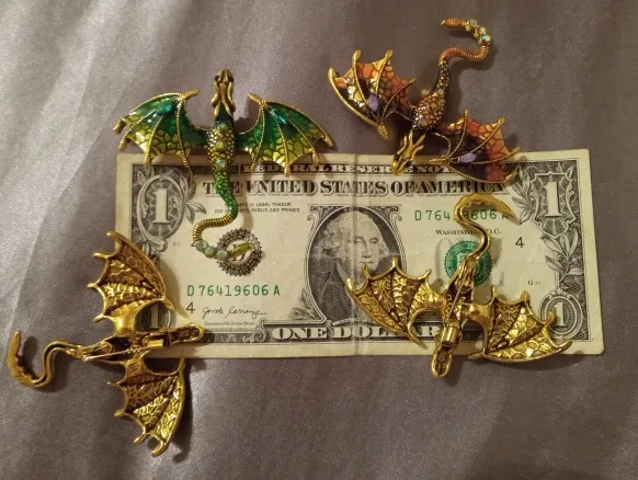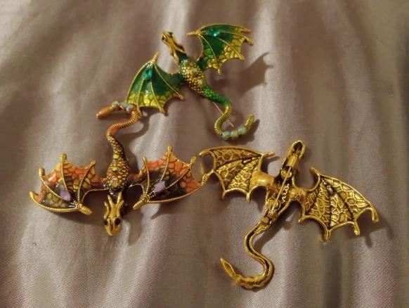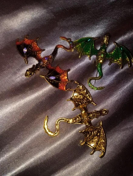 Adorable little dragon pins. My last order was the red and purple dragons, this order was the green and brown dragons, and the next order will be the blue and gray dragons to finish out the collection.