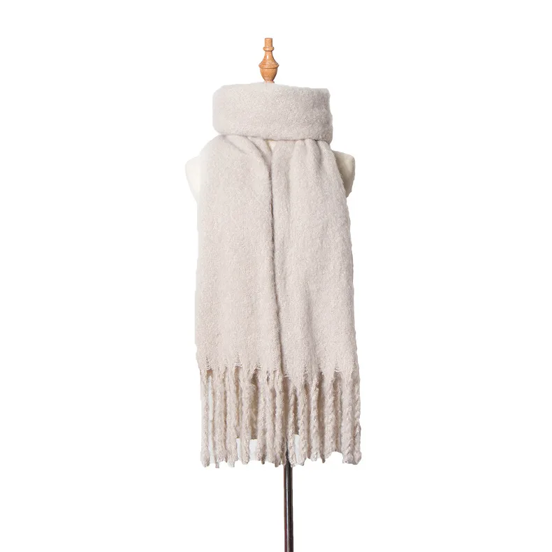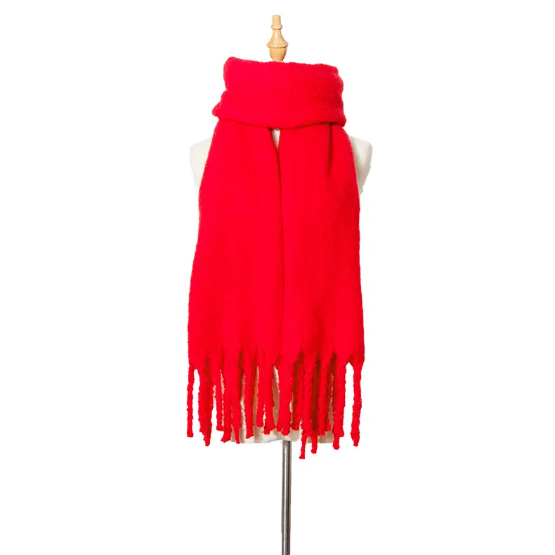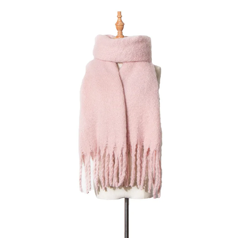 2024 New Fashion Winter Warm Solid Scarf for Women/Ladies luxury Warm Cashmere Shawl and Warps Thicken Wool Long Tassel