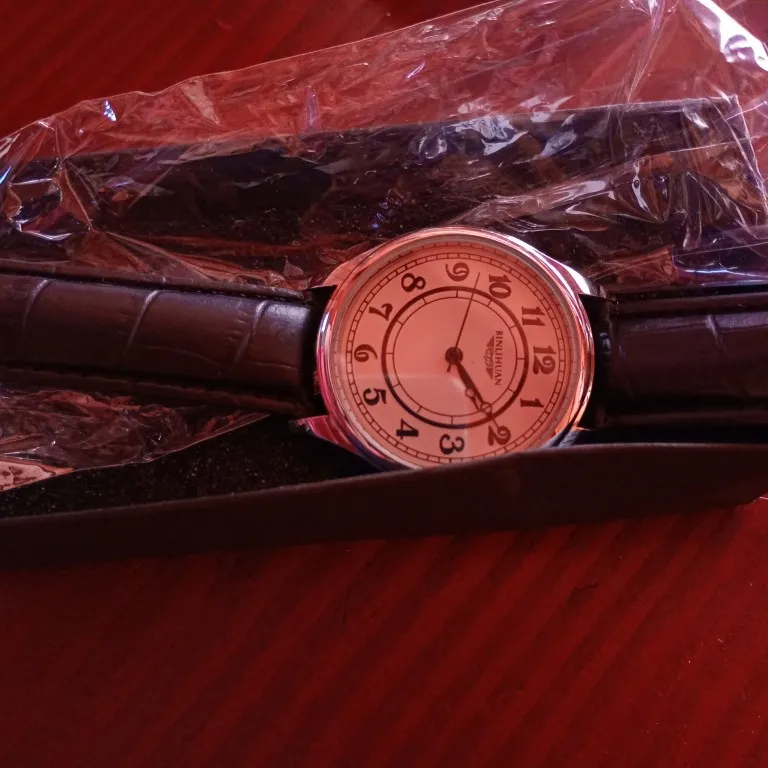 It arrived in good condition. Cheap watch but looks elegant. The leather strap seems of poor quality, with little use it will surely fall apart. But you get what you pay for.