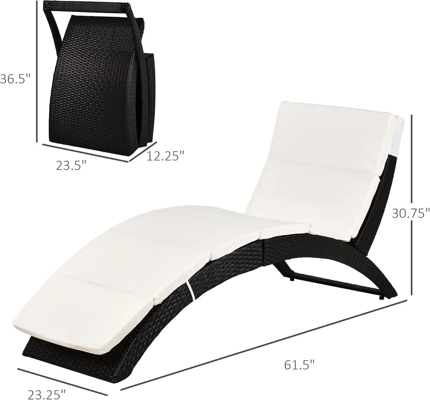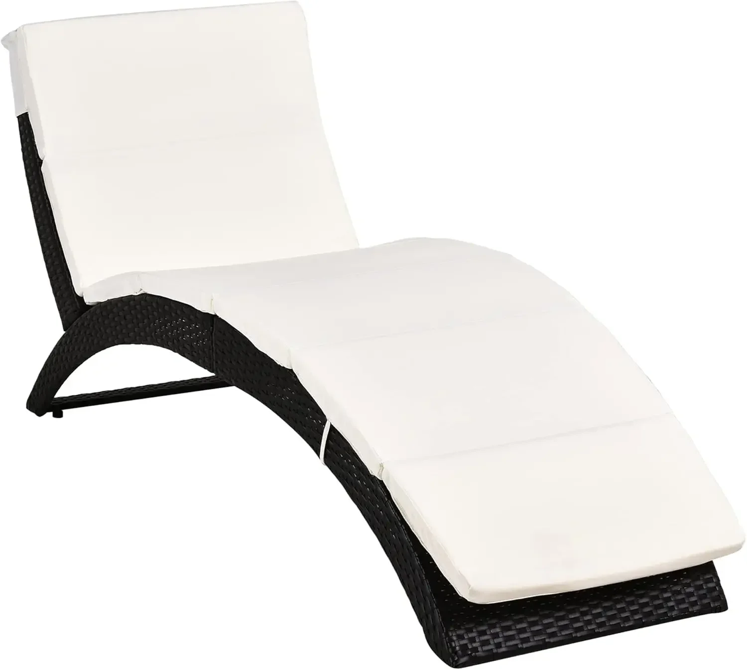 Patio Foldable Wicker Chaise Lounge, PE Rattan Outdoor Lounge Chair, Bed with Cushion for Garden, Backyard, Lawn, Beige